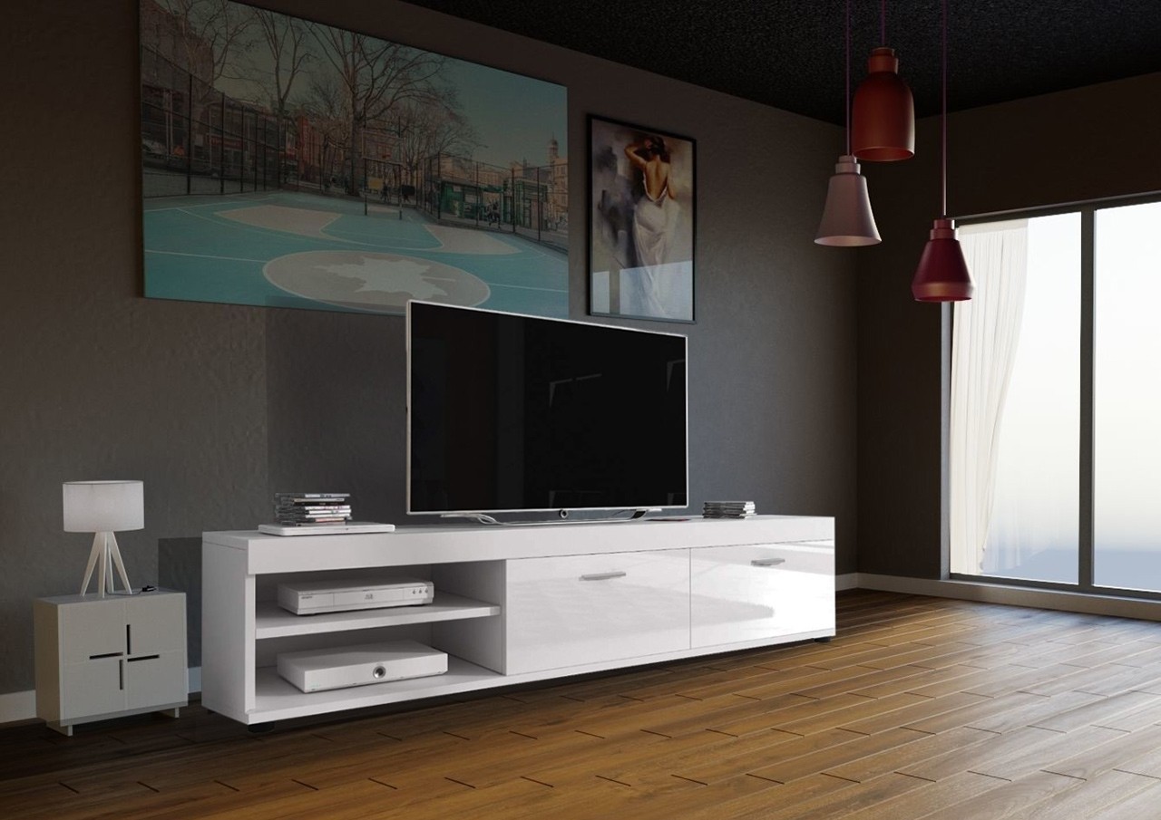 Modernizirajte svojo dnevno sobo s TV regalom IVOR, ki se poleg dobrega videza ponaša tudi s funkcionalnostjo. Regal ima dve odprti polici za elektronsko opremo ter dvoja spustna vratca, za katera lahko pospravite razne revije, časopise in ostale predmete katere želite imeti pospravljene in vedno pri roki.