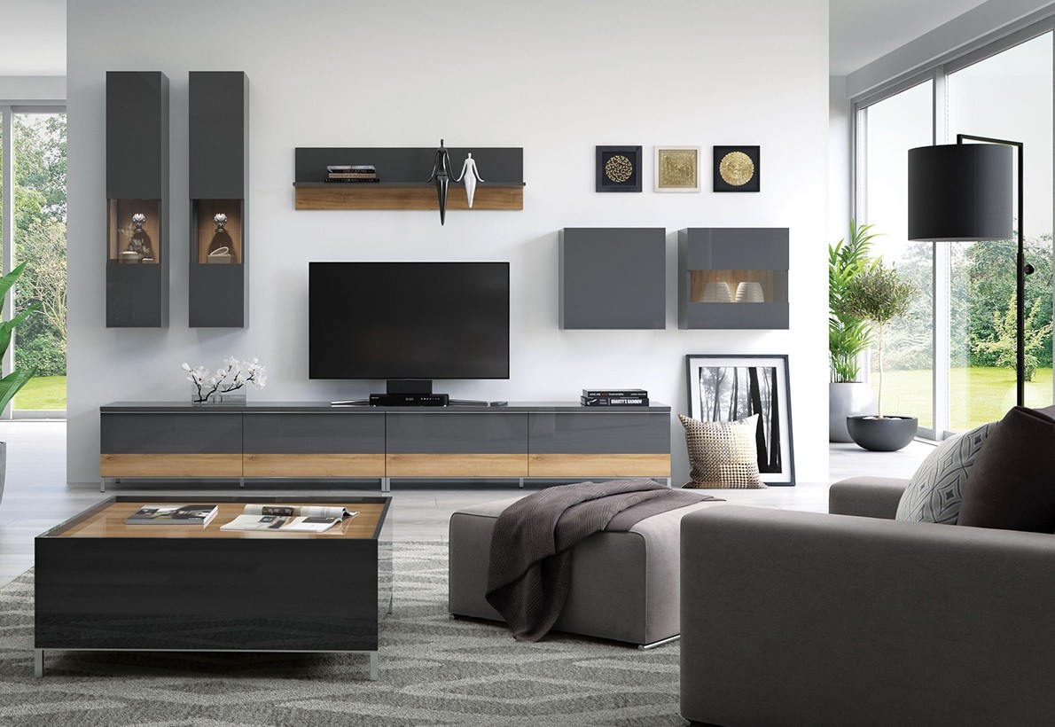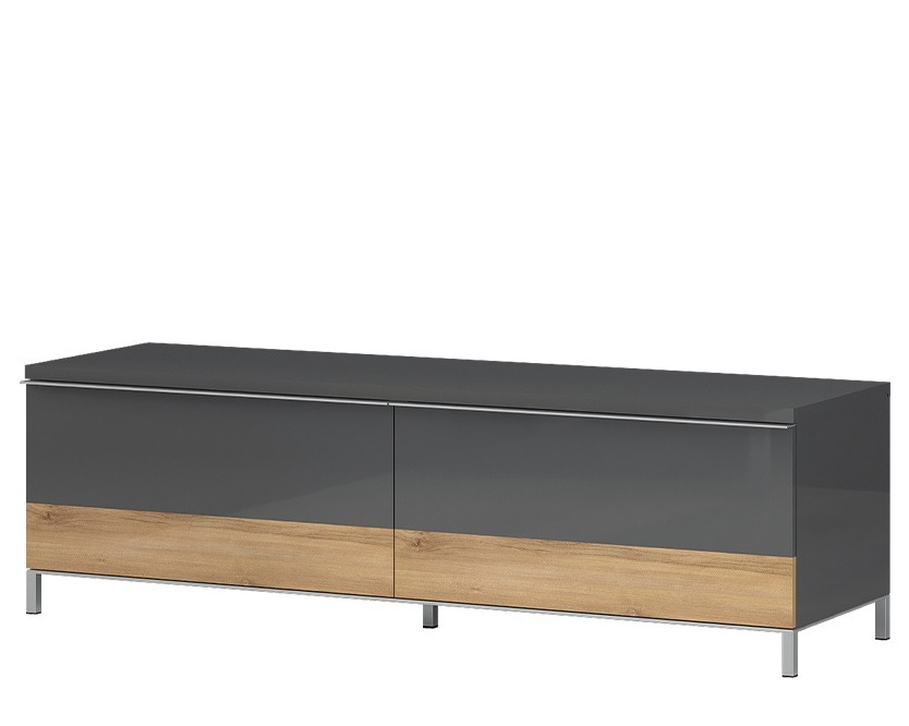 Modernizirajte svojo dnevno sobo s TV regalom RADDA ONYX, ki je na voljo v moderni barvni kombinaciji antracita in pacifičnega oreha. TV regal ima funkcijo tihega zapiranja, ki preprečuje nastajanje poškodb, zunanji deli so pa premazani z UV lakom, ki je veliko bolj odporen na vlago, praske in poškodbe kot standardni laki, zato bo vaše pohištvo dlje časa dobro ohranjeno in izgledalo kot novo! Oglejte si še ostale artikle kolekcije RADDA ONYX za stilsko dovršeni dom!
