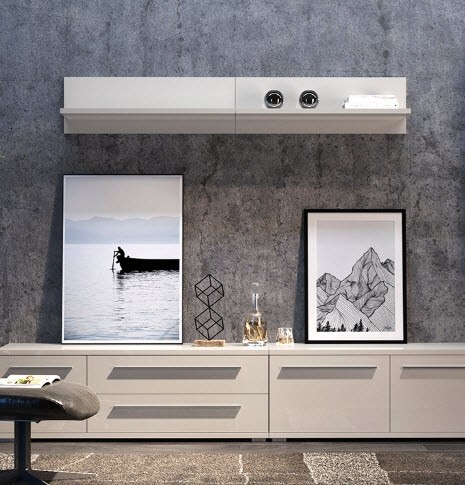 Elementi dnevnih sob Radda Piano so na voljo v minimalističnem izgledu v kombinaciji tople bež barve v visokem sijaju ter kromiranih ročk in nogic. Minimalistični dizajn vam poleg elegantnega videza nudi tudi preprosto kombiniranje z ostalim pohištvom in dekorativnimi elementi vašega doma, saj se lepo poda v vsak prostor.