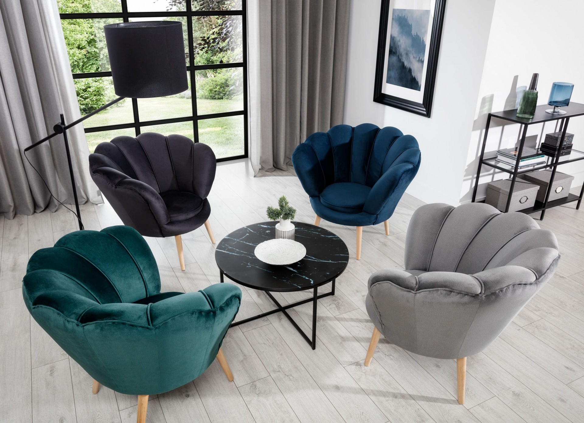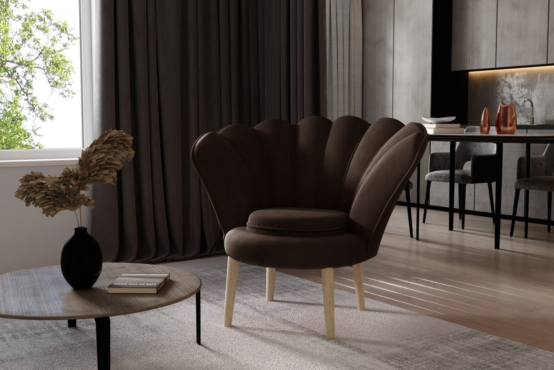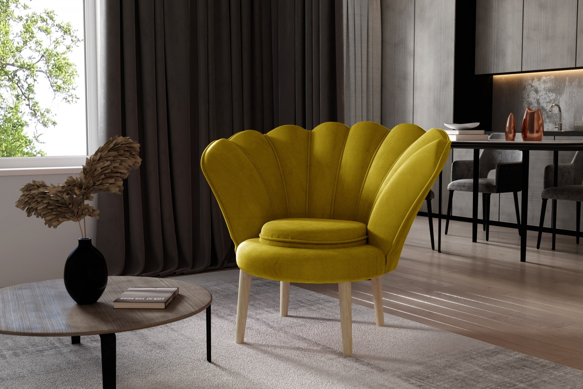 Iščete unikaten kos pohištva, ki bo osvežil vaš dom in vanj prinesel več modernega sloga? Fotelj Vivien je kot nalašč za vas, saj ni podoben običajnim foteljem in postane središče pozornosti v vsaki sobi! Unikatno hrbtišče spominja na veliko školjko z biseri, ki je simbol elegance in bogastva.