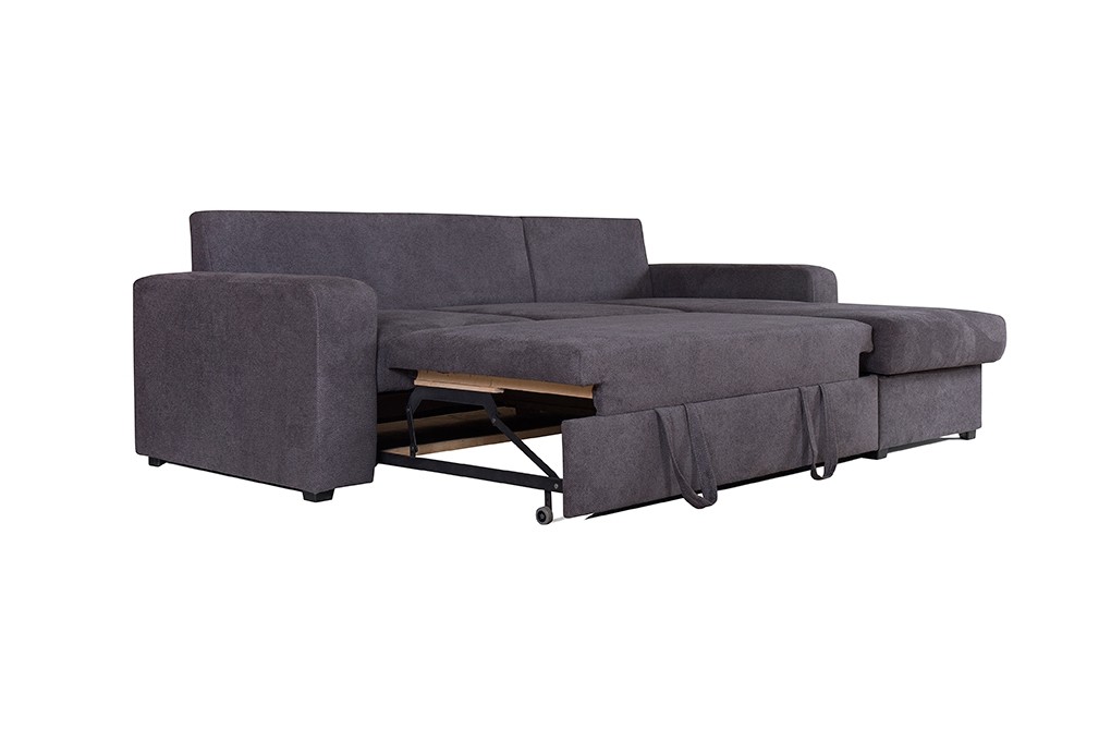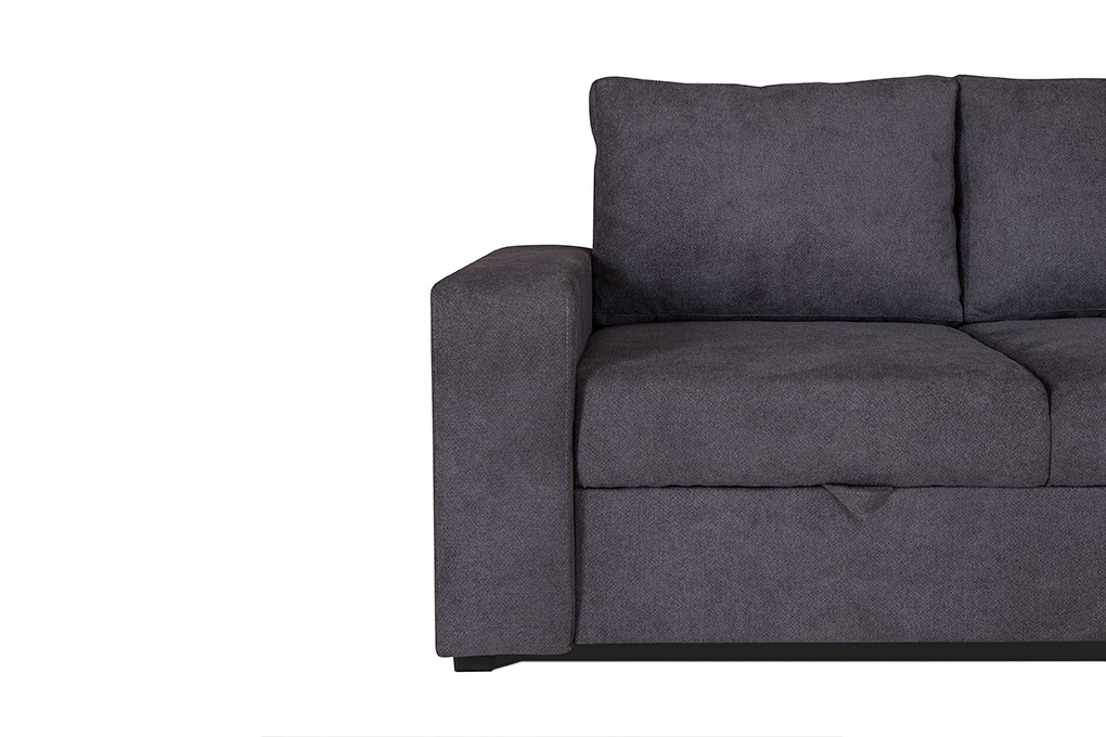 Klasična sedežna garniura PIANO je oblazinjena v kvalitetno tkanino sive barve, ki vam omogoča udobno sedenje v vseh letnih časih saj vas bo pozimi grela, poleti pa omogoča telesu, da diha. Ima shranjevalni zaboj, kamor lahko pospravite dodatne vzglavnike in odeje ter s tem ohranite pospravljeno dnevno sobo. Ima izvečno ležišče dimenzij 200x145 cm.