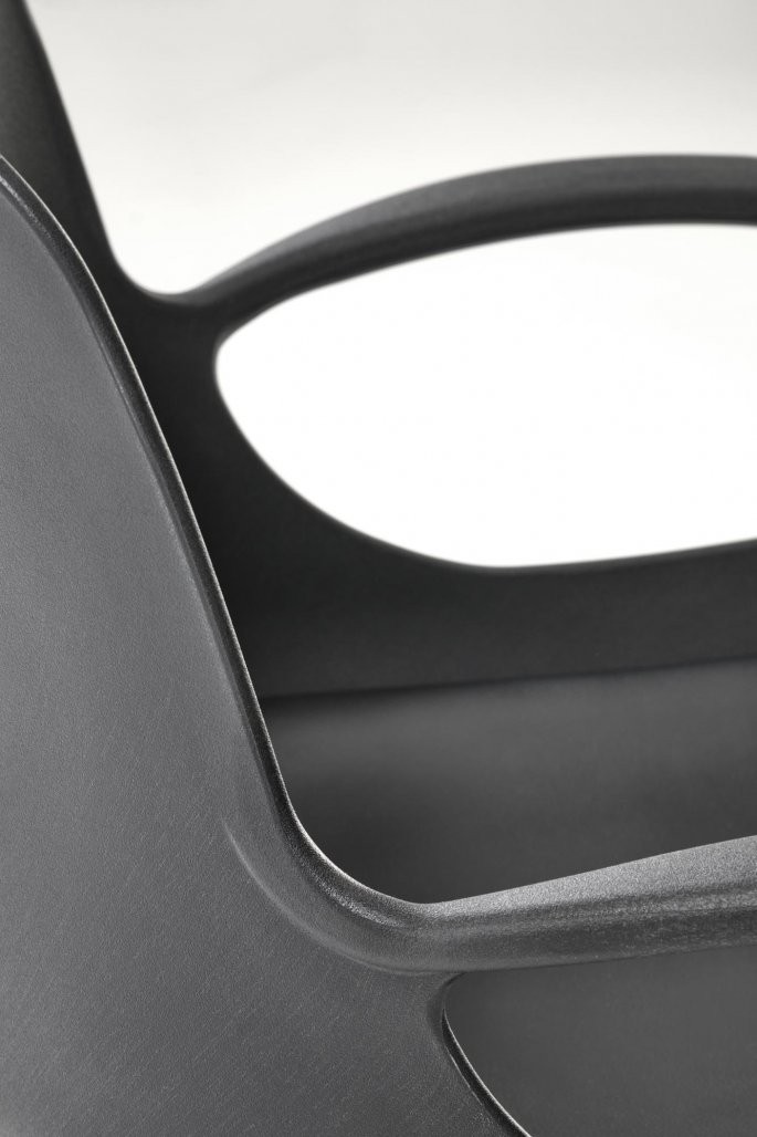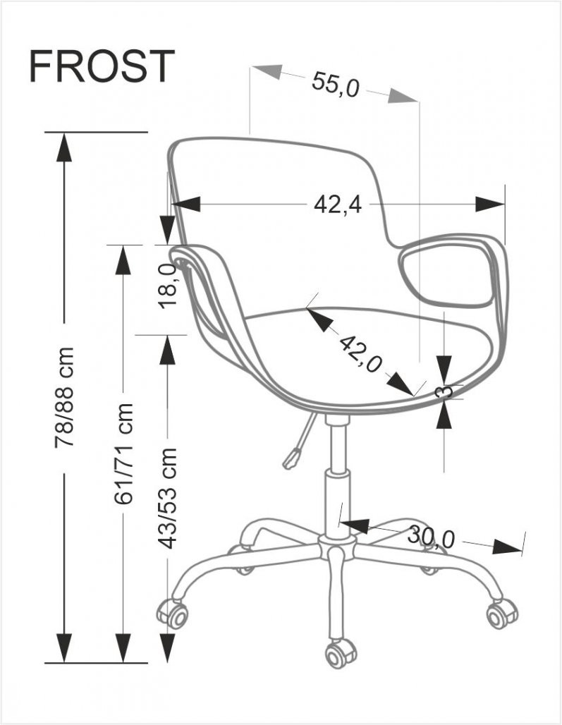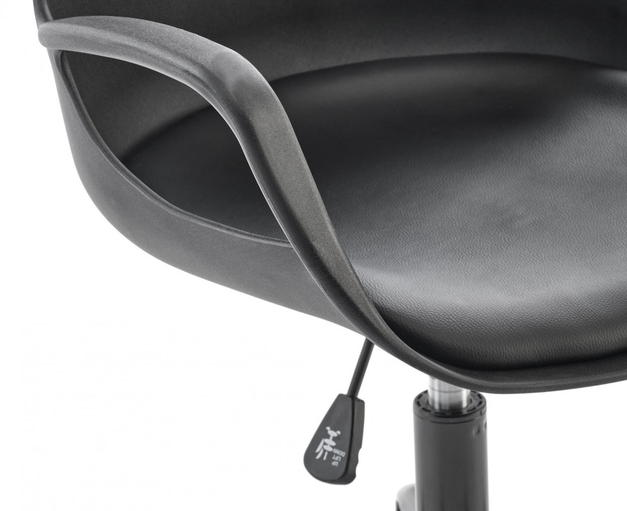 Stol je izdelan iz kombinacije kakovostnega eko usnja in polipropilena. Eko usnje nudi prijeten dotik in je enostavno za čiščenje, medtem ko polipropilenska konstrukcija zagotavlja stabilnost in lahkotnost. Opremljen je s preprostim mehanizmom za nastavitev višine sedeža, kar omogoča optimalno prilagoditev vaši mizi in telesni višini, s čimer prispeva k zdravi telesni drži in zmanjšanju napetosti med dolgotrajnim sedenjem.