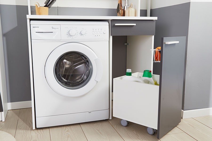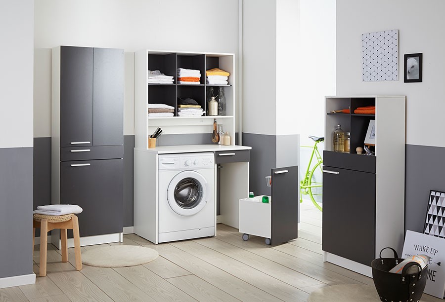 Večfunkcijska komoda VERSUS je večfunkcijska komoda, ki bo odlična rešitev za vsako kopalnico. Če nimate dovolj prostora za shranjevanje čistil in nimate dovolj prostora v kopalnici za dodatno omaro, je komoda VERSUS kot nalašč za vas. Komoda ima spodnji del v katerem je prostor za pralni stroj. Poleg je omara na kolesih namenjena shranjevanju detergentov in čistil. Večfunkcijska komoda je na voljo v dveh postavitvah. Dokupite lahko tudi nadomaro s praktičnimi policami.