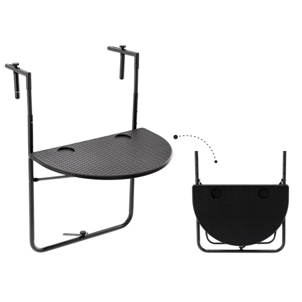 Ta praktična miza se enostavno pritrdi na ograjo balkona, kar pomeni, da ne zavzema talnega prostora in omogoča optimalno izkoriščenost prostora.