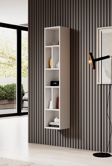Viseča knjižna polica je modernega izgleda z odličnim izkoristkom prostora. Vanjo lahko shranite vaše najljubše knjige, revije, družabne igre in še ostale dekorativne stvari, ki vam bodo naredile prostor bolj domač. Na voljo je v beli barvi visokega sijaja, ki se odlično poda v vsako dnevno sobo.