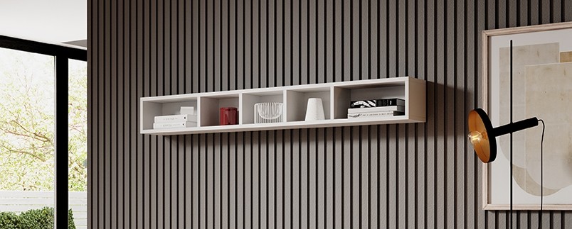 Vitrina TOLEDO je na voljo v beli barvi visokega sijaja, ki vam bo osvetlila prostor in ga naredila modernejšega. Viseča polica vsebuje veliko odlagalne površine kamor lahko odložite knjige, revije in ostale stvari, ki jih želite imeti na vidnem mestu.