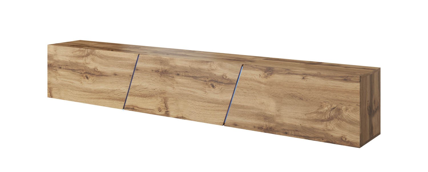 Vaša dnevna soba bo s Viseča TV omarica LANT Hrast 240 cm+ LED postala moderen in privlačen prostor za sproščanje v katerem boste z veseljem preživljali prosti čas.