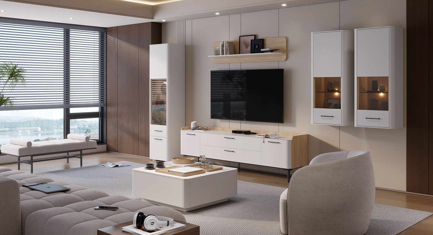 MINIMALISTIČNE IN PREPROSTE LINIJE ZA ZRAČNO DNEVNO SOBO