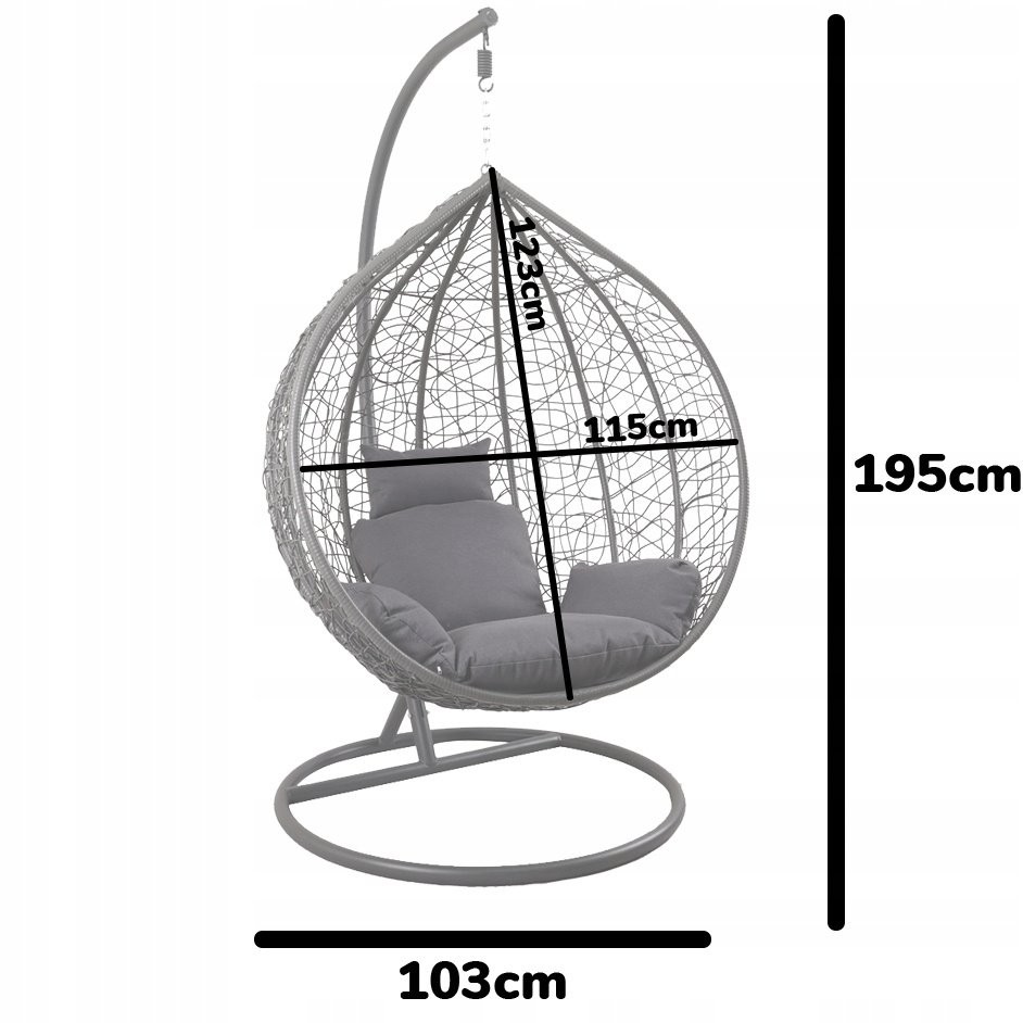 Pri izdelavi so uporabljeni tehnoratan in jeklo. Dimenzije sedišča: 115 x 74 x 123 cm. Primeren je za uporabo na terasi. Material je odporen na UV-žarke.