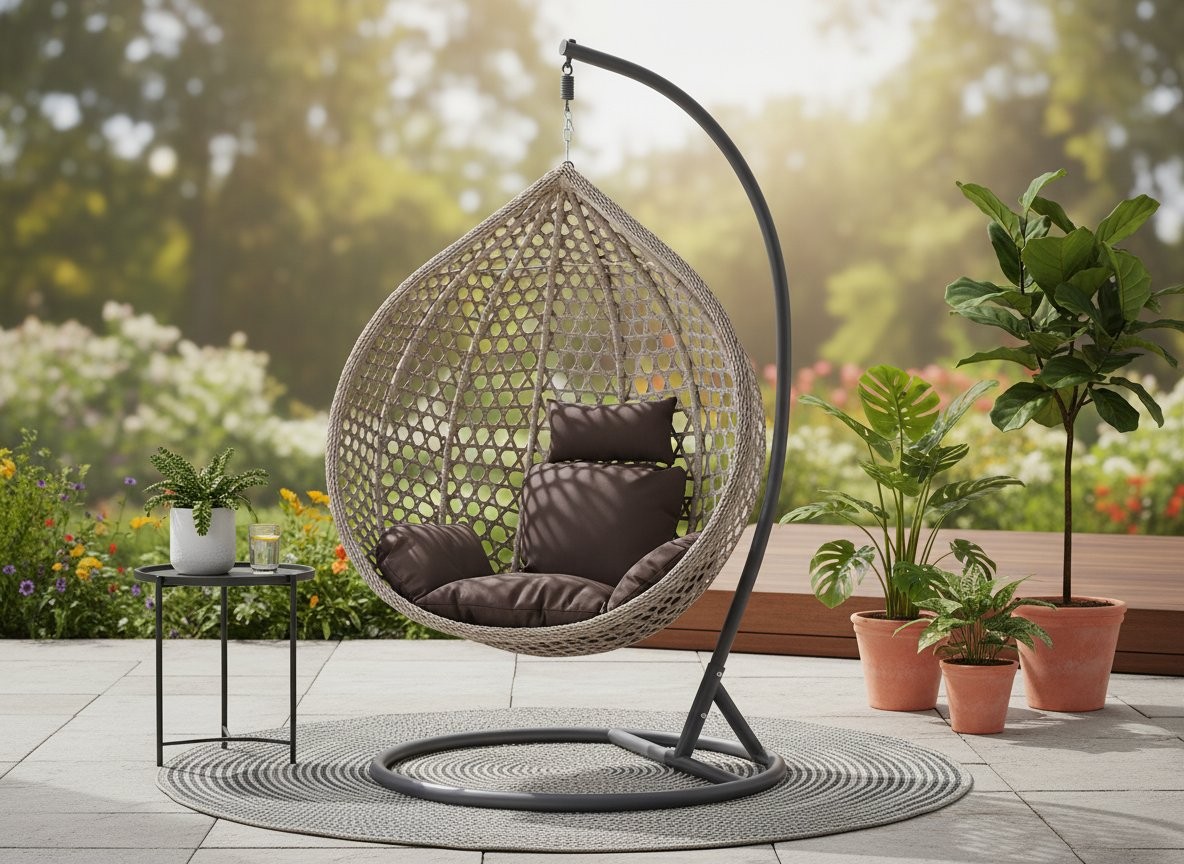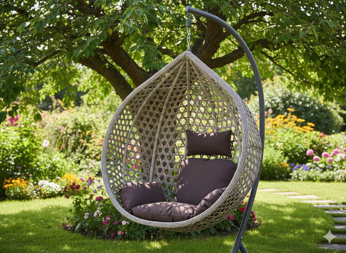 Viseči fotelj Nikoš XL (siva/rjava) ustvari udoben kotiček za počitek na vrtu, terasi, balkonu ali v notranjem prostoru. Barvna kombinacija je siva / rjava.