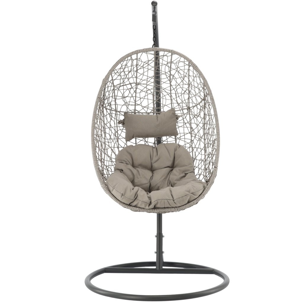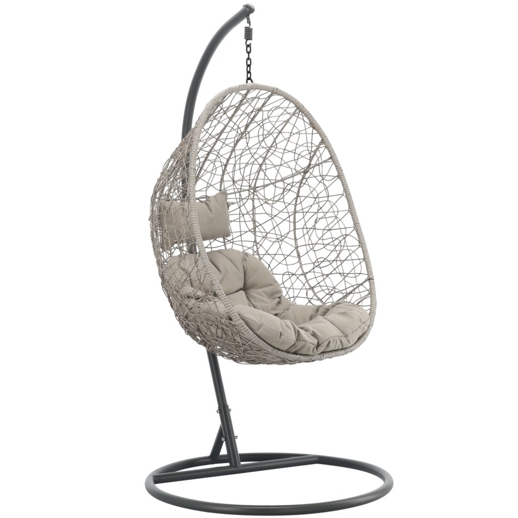 Viseči fotelj Zirin (siv s sivo blazino in temno sivim ogrodjem) je funkcionalen kos pohištva oziroma dodatek za dom, ki združuje uporabnost in urejen videz. Barvna izvedba v odtenku siv s sivo blazino in temno sivim ogrodjem se zlahka poveže z različnimi ambienti. Izbor materialov, kot so kovina, dopolnjuje uporabno in vizualno uravnoteženo zasnovo.