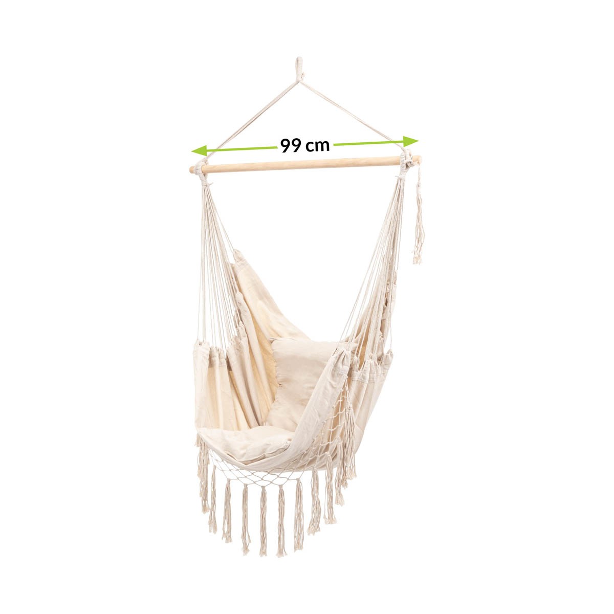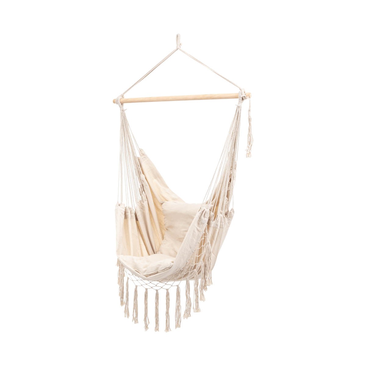 Viseči vrtni stol BRASIL CLASSIC je modernega izgleda in kvalitetne izdelave. Trdne vrvi, zagotavljajo varnost in stabilnost, za udobje pa poskrbi bombaž, ki je koži prijeten. Ker so materiali kvalitetni bo uporabna doba na terasi ali vrtu daljša od ostalih mrež. Maksimalna obremenitev znaša 120 kg.