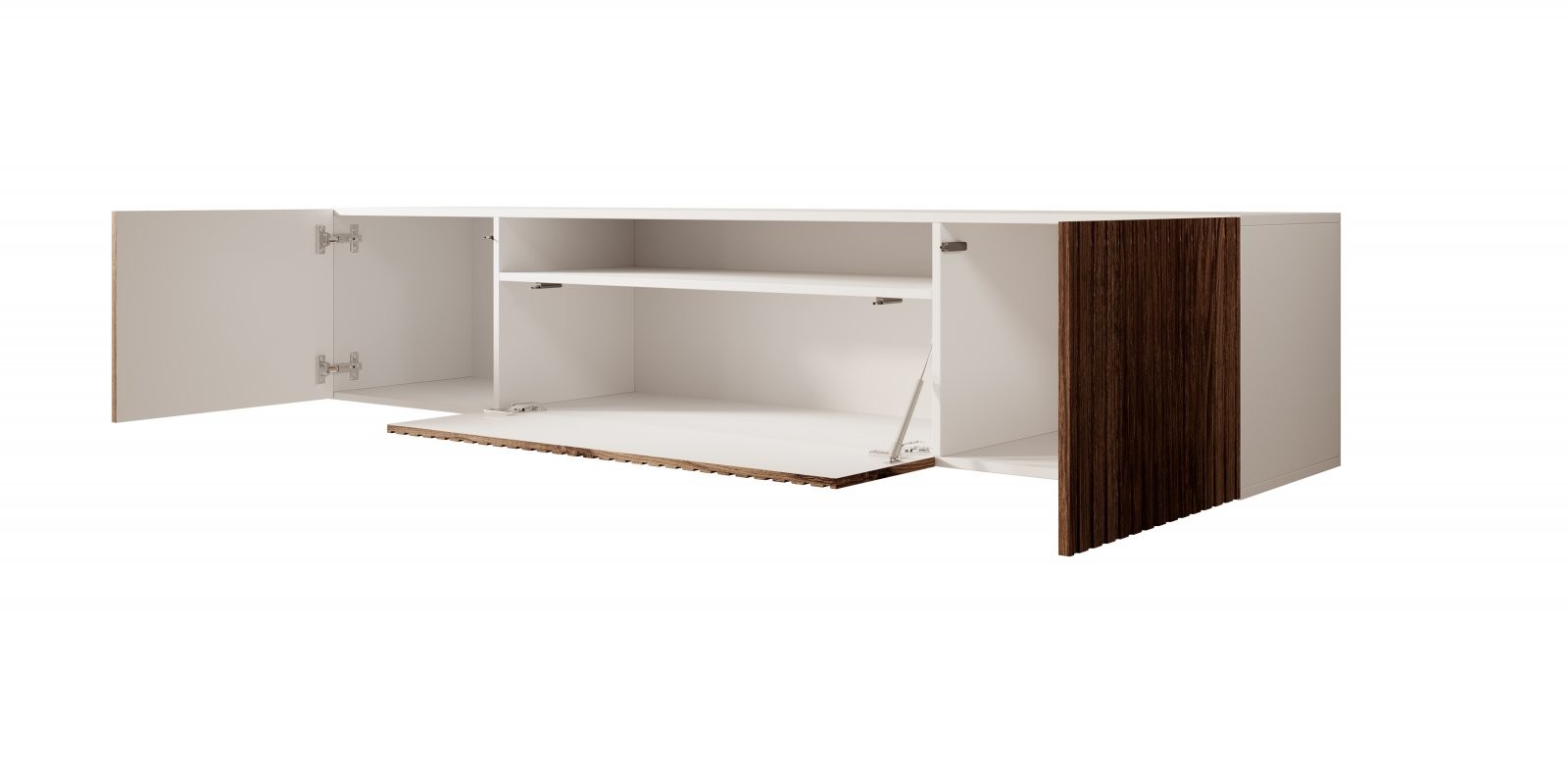 Visoka RTV omara Miro je sodobna in elegantna rešitev za vaš dnevni prostor, ki združuje funkcionalnost s stilom. Na voljo je v dveh barvnih kombinacijah, kar omogoča enostavno prilagoditev različnim slogom notranje opreme.