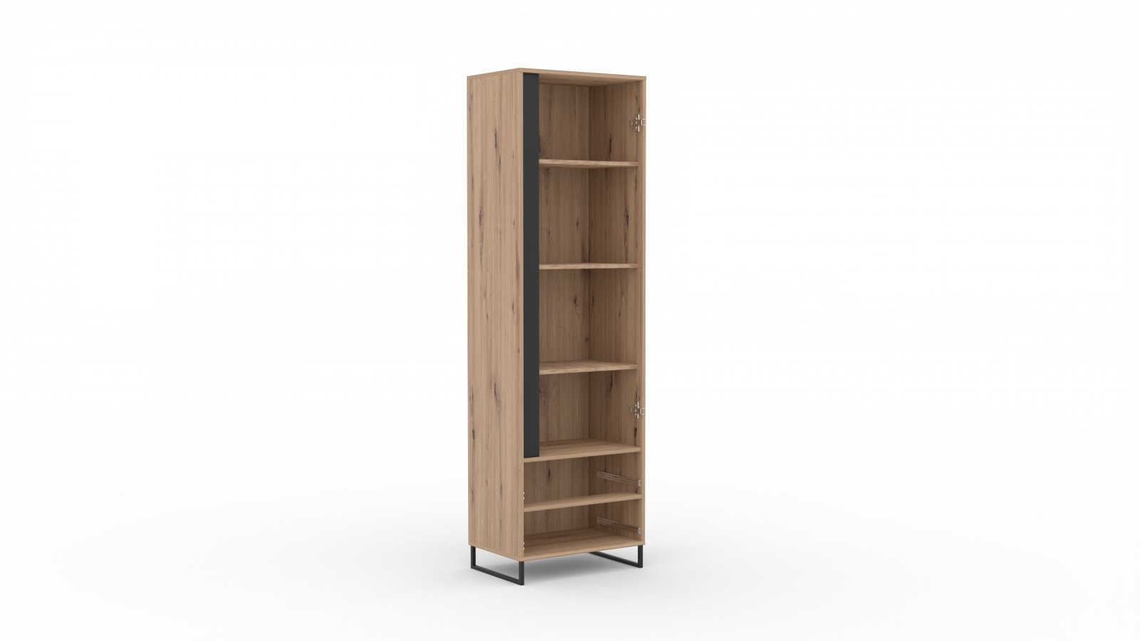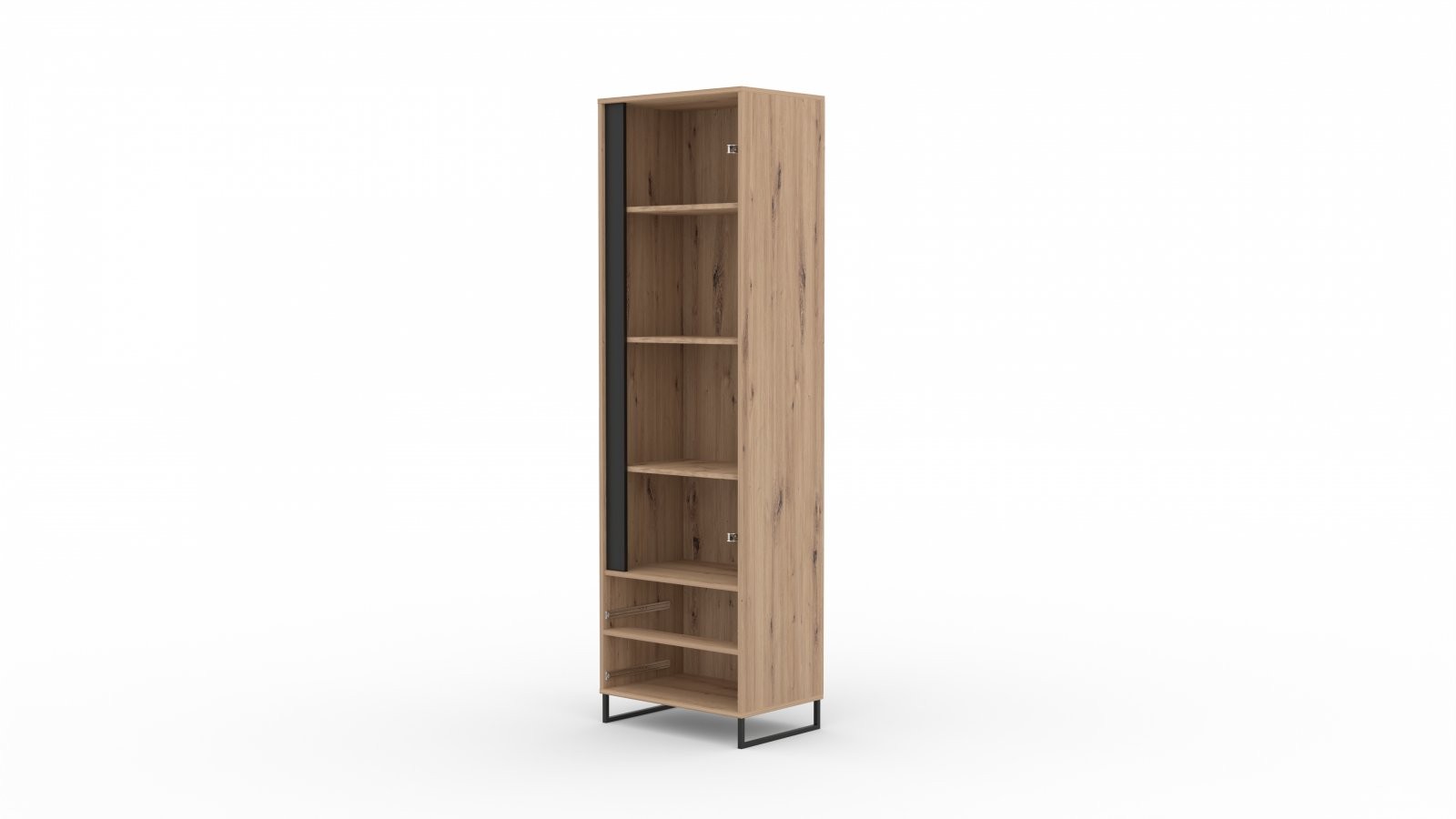 Visoka vitrina ARIA je elegantna in funkcionalna rešitev za sodobne domove. S svojim prefinjenim videzom v kombinaciji hrasta Artisan in črne barve bo popestrila vsak prostor ter ponudila obilo prostora za shranjevanje in razstavljanje vaših najljubših predmetov.