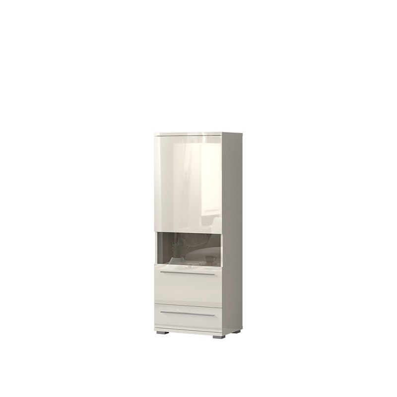 Vitrina Radda Piano ima vključeno LED osvetlitev in funkcijo tihega zapiranja. Sestavljena je iz enega predala in enih vratc, za katerimi se skrivajo štiri police, zato lahko vanjo pospravite knjige, jedilni pribor in ostale poljubne predmete, katere želite imeti lepo organizirane. Na voljo je v topli bež barvi v visokem sijaju. Izdelana je iz oplemenitene iverne plošče. Zunanji deli so v celoti premazani z UV lakom, ki je štirikrat bolj odporen na praske in poškodbe kot standardni lak, zato boste vitrino lahko uporabljali vrsto let. vitrina je del modularnega sistema dnevnih sob Radda Piano, oglejte si še ostale artikle te linije in si ustvarite sanjsko in unikatno dnevno sobo!