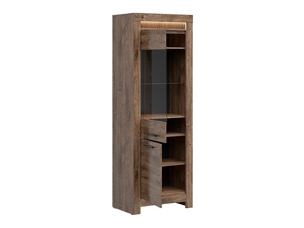 Moderna in preprosta vitrina TORIN vam bo s svojim shranjevalnim in odlagalnim prostorom omogočila več prostora, kamor boste pospravili stvari, da bo vaš prostor urejen in čist. Vitrina je na voljo v barvi ribbeck hrasta.