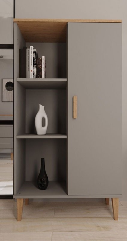 Čudovita vitrina DENVER je primerna za ljudi, ki želijo svežine in modernega stila v svoji dnevni sobi. Vitrina vsebuje štiri police na katere lahko pospravite knjige, revije, spominke ali pa družabne igre. Vitrina je na voljo v kombinaciji hrasta in sive barve.