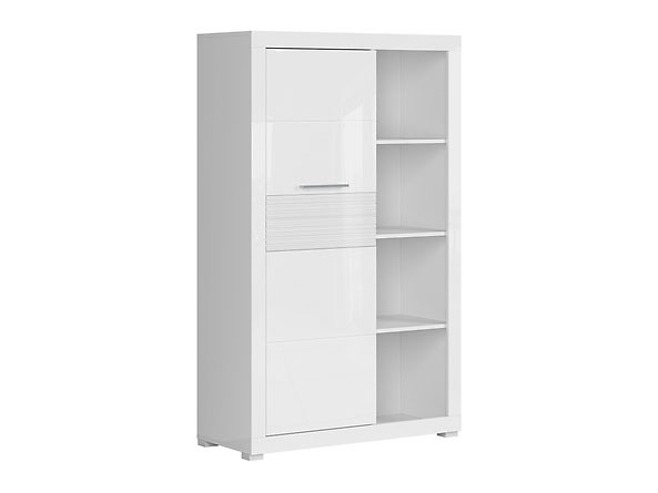 Moderna in praktična vitrina FLAMES nudi veliko shranjevalnega in odlagalnega prostora, da bodo vaše stvari vedno na mestu. Vitrina je na voljo v kombinaciji bele barve in bele barve visokega sijaja, ki bo popestrila in posvetlila vaš prostor.