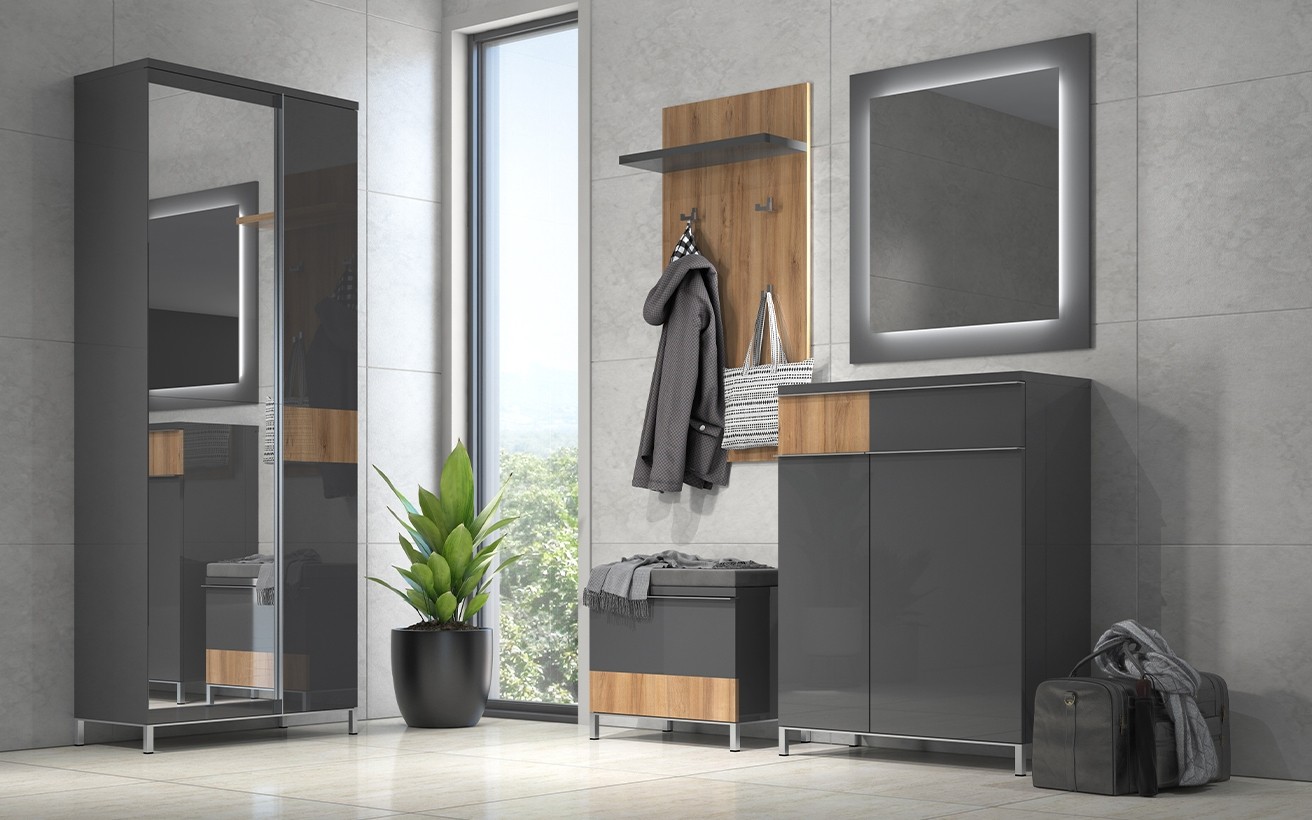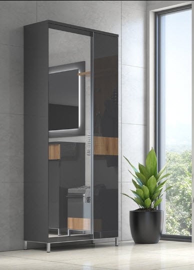 Popestrite svojo predsobo z elegantno vitrino Milla Onyx, ki vključuje praktično visoko ogledalo ter vam nudi obilo prostora za shranjevanje vaših jaken in plaščev. Vitrina ima funkcijo tihega zapiranja, ki vam nudi lažjo vsakodnevno uporabo ter preprečuje nastajanje poškodb. Zunanji deli so premazani z UV lakom, ki je bolj odporen na praske in poškodbe, zato bo pohištvo dlje časa ostalo lepo ohranjeno in bo izgledalo kot novo! Oglejte si še ostale elemente predsobe Milla Onyx in si ustvarite eleganten in čist dom!