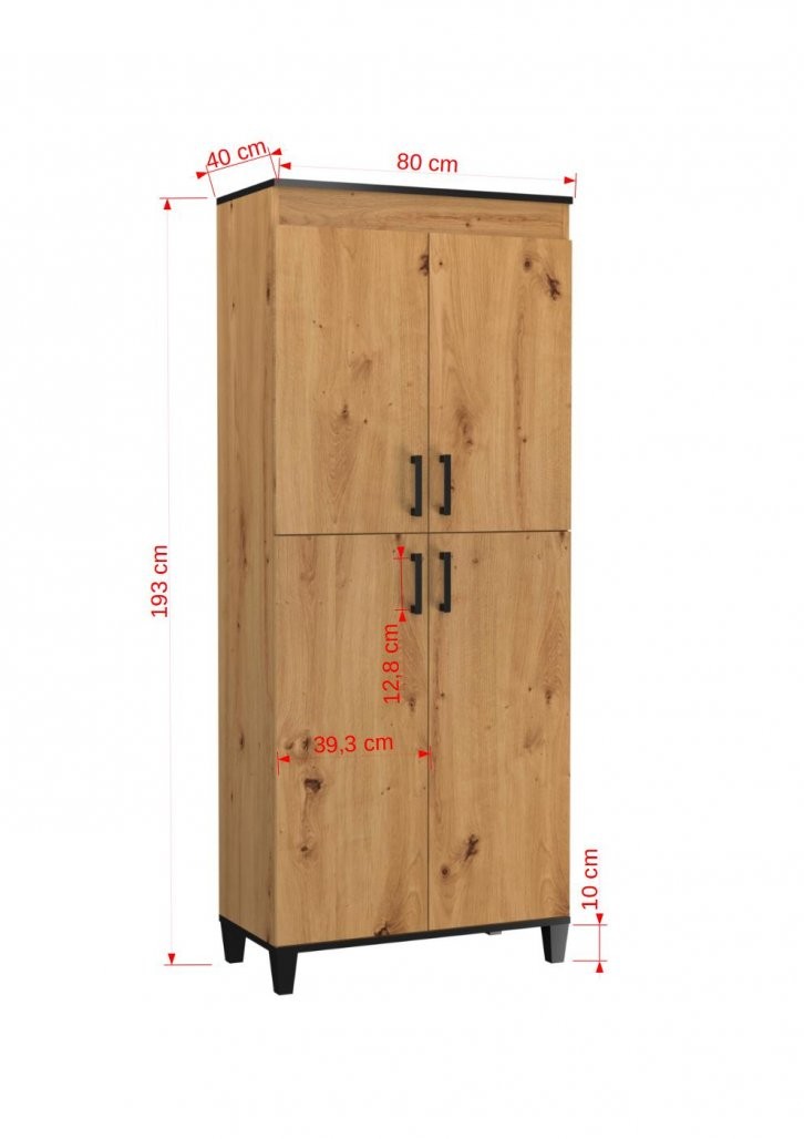 Ta funkcionalna vitrina je idealna za shranjevanje in razstavljanje vaših najljubših predmetov. S štirimi vrati in prostornimi policami omogoča organizirano shranjevanje različnih predmetov, od knjig do dekoracije.