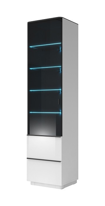 Vitrina TOGY se bo s svojim modernim dizajnom popolno podala v vsak dom. Vitrina ima steklene police z LED osvetlitvijo.