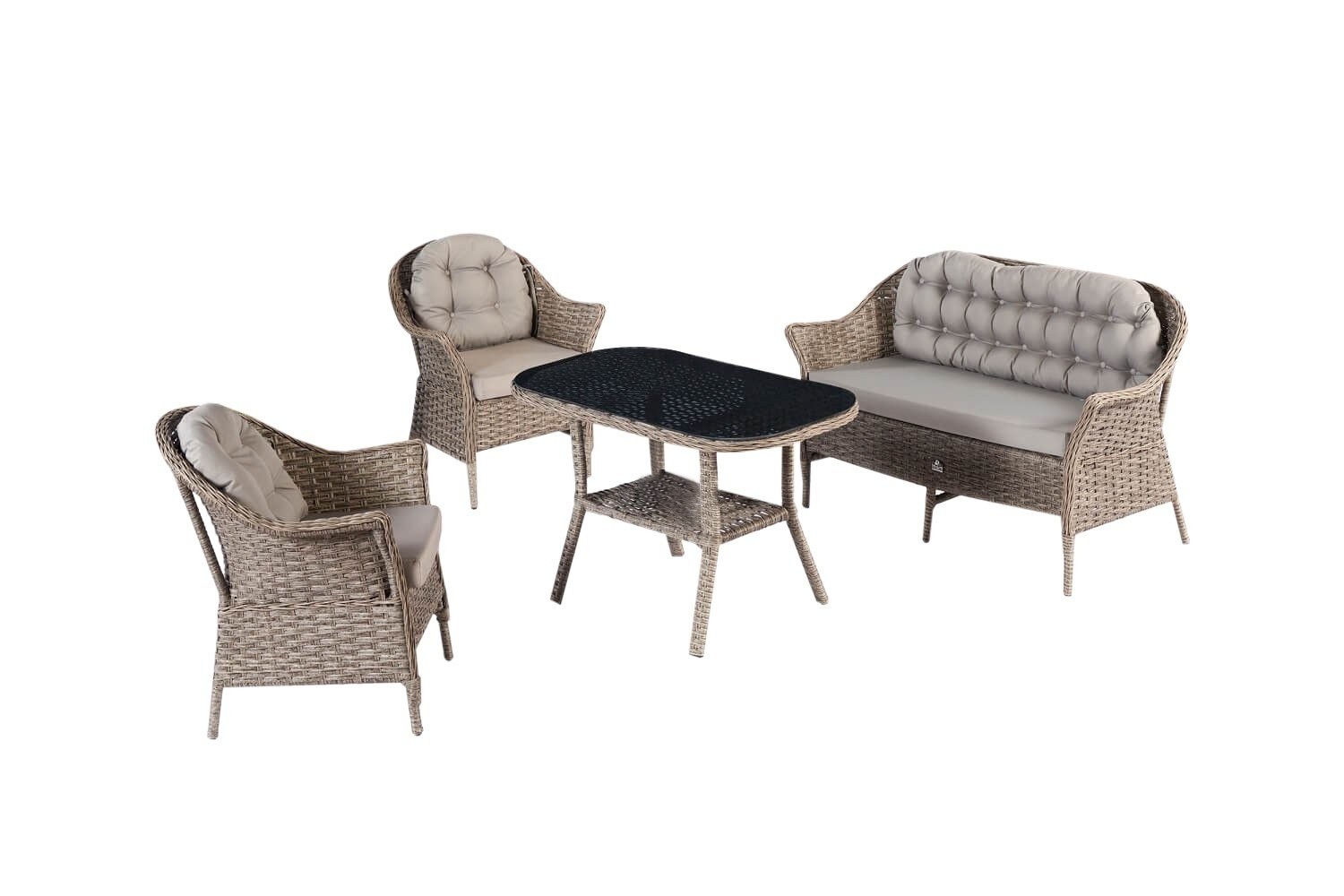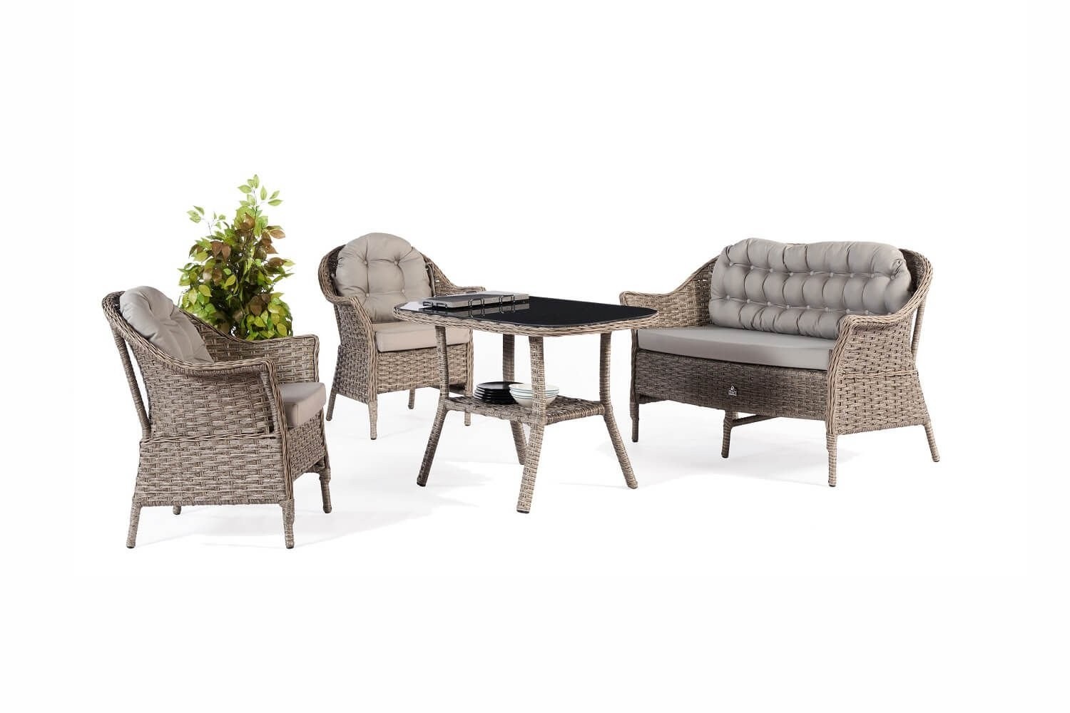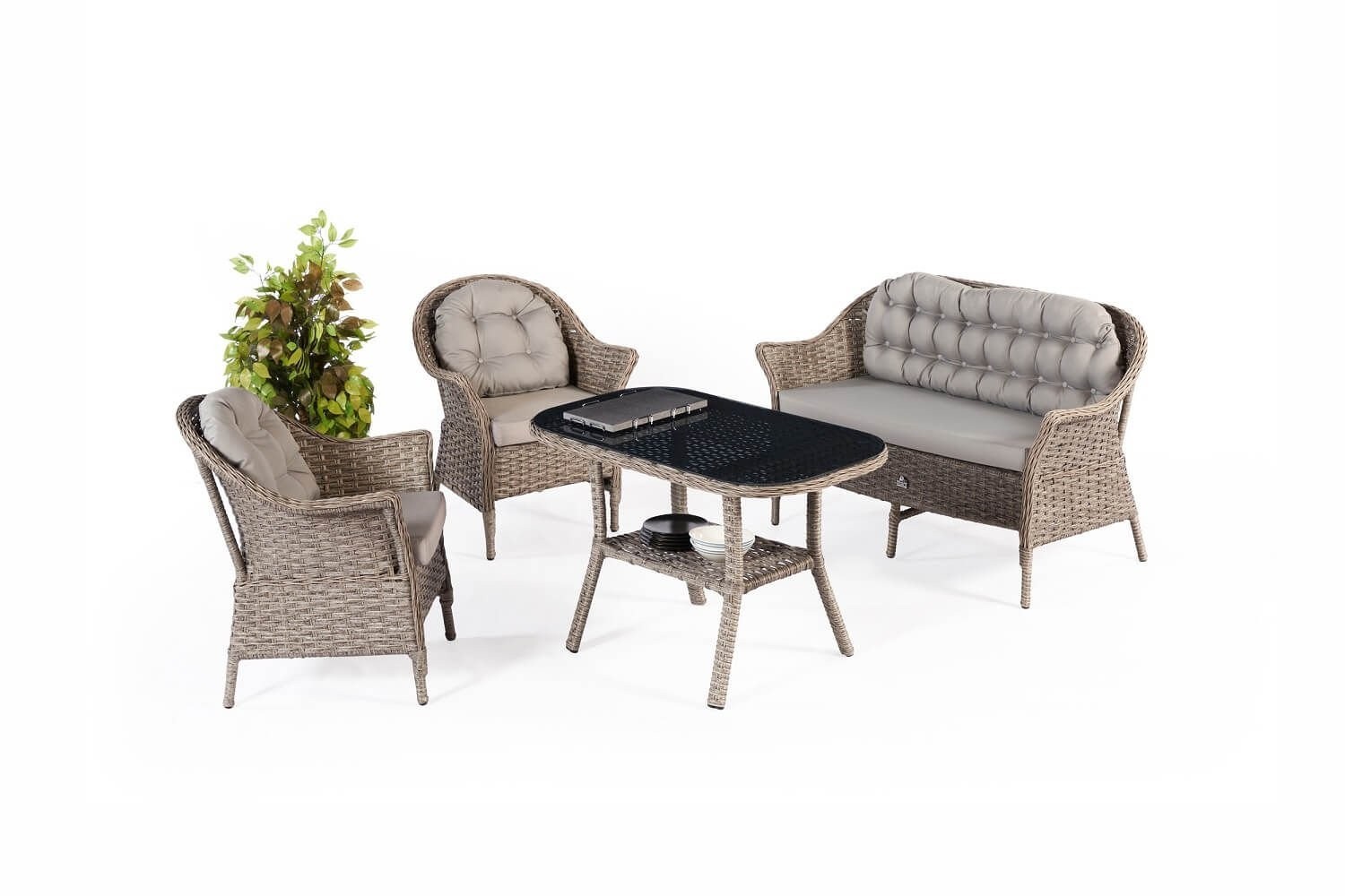 Vrtna garnitura Aether ponuja eleganten prostor za sprostitev na vašem vrtu ali terasi. Njena edinstvena funkcionalnost je v tem, da je okvir popolnoma izdelan iz aluminija, kar pomeni, da je izjemno robustna in odporna na vse vremenske razmere. Razkošje, ki ga nudi ta zbirka, je njena prefinjena siva barva, ki prinaša sodoben pridih na vsako teraso ali vrt. Ne glede na to, ali gostite piknik ali preprosto uživate v miru in tišini, vrtna garnitura Aether zagotavlja, da se boste vedno sprostili v stilu.