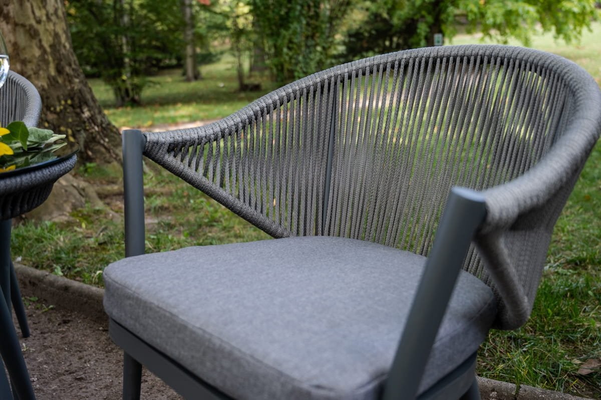 Izdelana je iz lahke, a izredno trpežne aluminijaste konstrukcije in sintetične pletenine, kar zagotavlja visoko odpornost na vremenske vplive. Tako garnitura BREVE ni le stilska, temveč tudi praktična rešitev, ki bo nudila udobje in eleganco vrsto let.