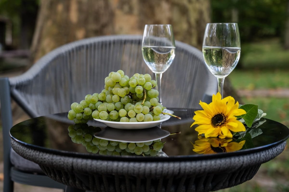 Posebnost garniture je visoka miza, ki je primerna tako za jutranjo kavo kot tudi za obroke, kar jo naredi izjemno funkcionalno.