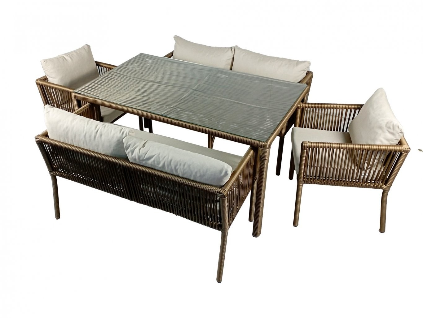 Vrtna garnitura Iris II prinaša izjemno funkcionalnost za vašo zunanjo ureditev. Izdelana iz 100% aluminija, nudi trajnost in vzdržljivost v vseh vremenskih razmerah. Steklena miza je izjemno trpežna, kar postavlja kvaliteto povsem na novo raven. Nakup garniture Iris II vam prinaša eleganten in udoben prostor, ki združuje udobje in stil.