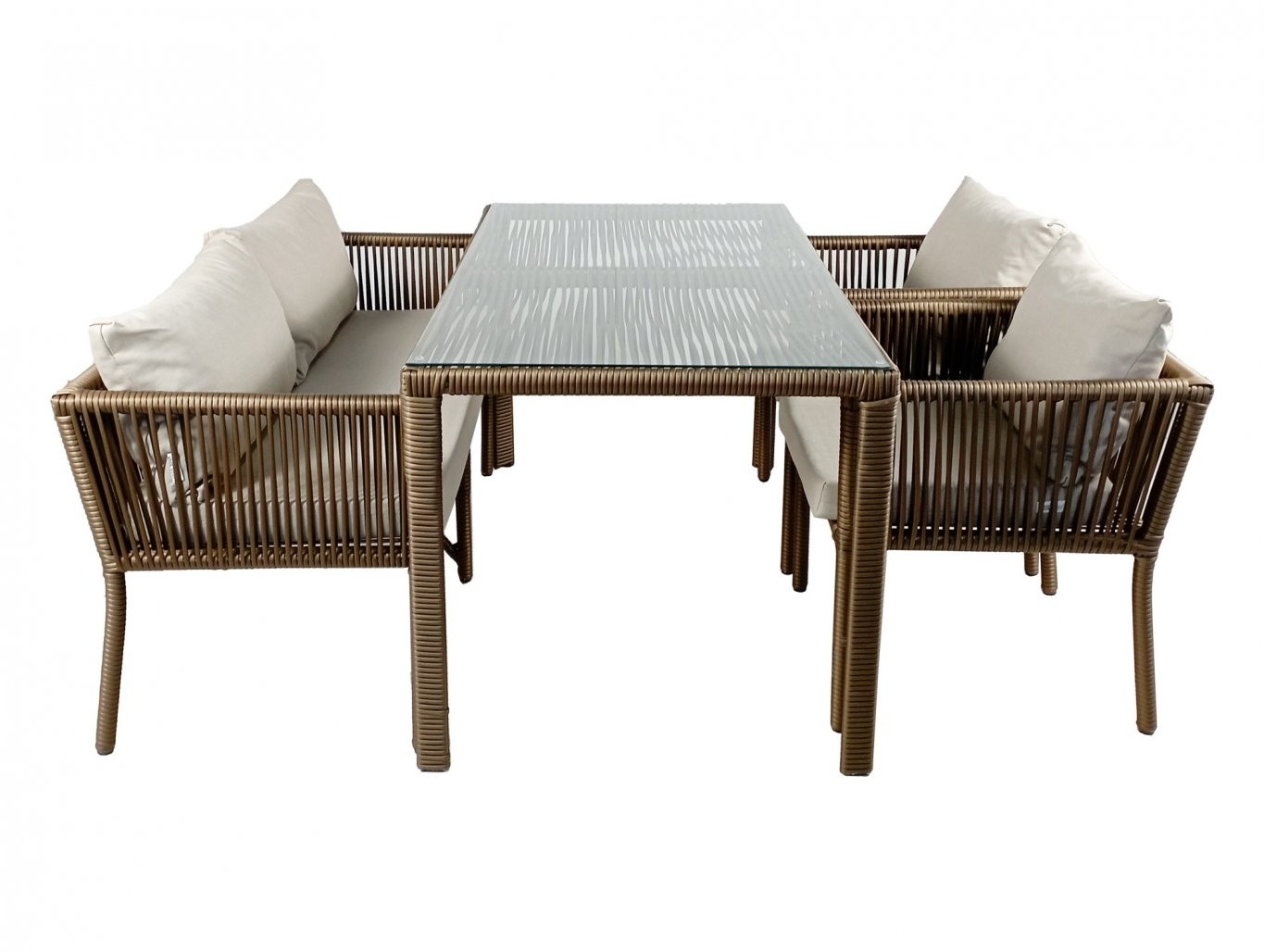 Naša vrtna garnitura Iris III je oblikovana za ljubitelje udobja na prostem. Izjemno robustni aluminijski okvir je odporen na korozijo in zagotavlja dolgo življenjsko dobo garniture, hkrati pa majhna teža omogoča, da jo lahko premikate z lahkoto. Miza s stekleno površino dodaja moderno estetiko, ki se odlično vključi v vsako okolje.