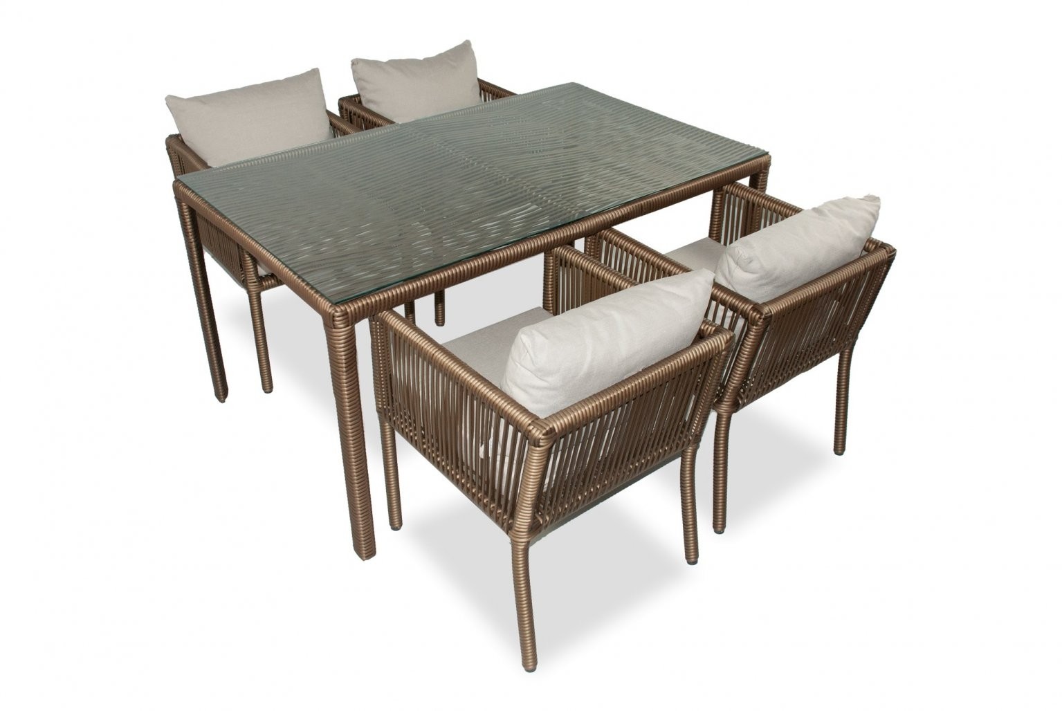 Vrtna garnitura Iris VI je izjemna kombinacija funkcionalnosti in stila. Izdelana iz 100% aluminija, odporna proti madežem in zagotavlja trajnost v vseh vremenskih pogojih. Sestavljena je iz elegantne mize z vrhom iz kaljenega stekla in štirih udobnih stolov, zato bo ta vrtna garnitura postala središče vseh vaših srečanj na prostem. Prednost je v večbarvnosti, ki omogoča, da izberete barvo, ki najbolje ustreza vašemu zunanjemu dekorju.