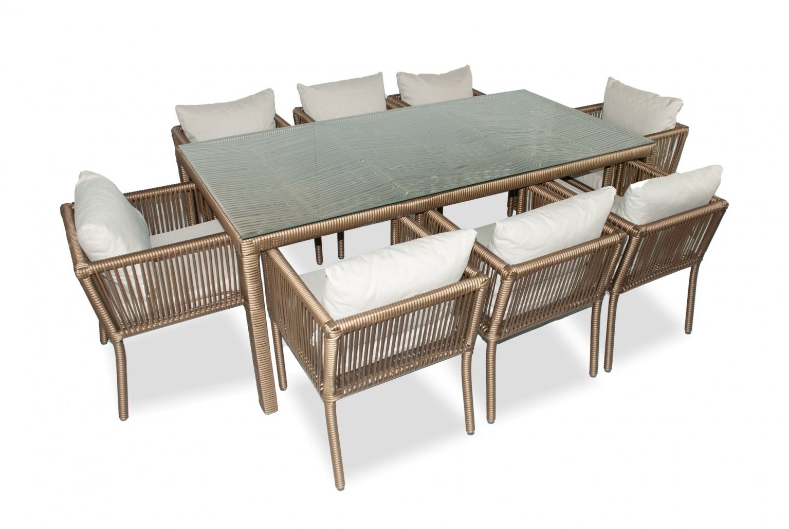 Vrtna garnitura Iris VII se ponaša z zelo trpežno kovinsko konstrukcijo, izdelano iz 100% aluminija, ki je odporna na učinke vremenskih razmer in korozijo. Elegantna miza je opremljena s stekleno ploščo, izdelano iz 100% kaljenega stekla, ki je odporna na praske in lomljenje. Prednost nakupa te garniture je njena visoka funkcionalnost ter prefinjena in univerzalna oblika, ki bo polepšala vsak vrt ali teraso.