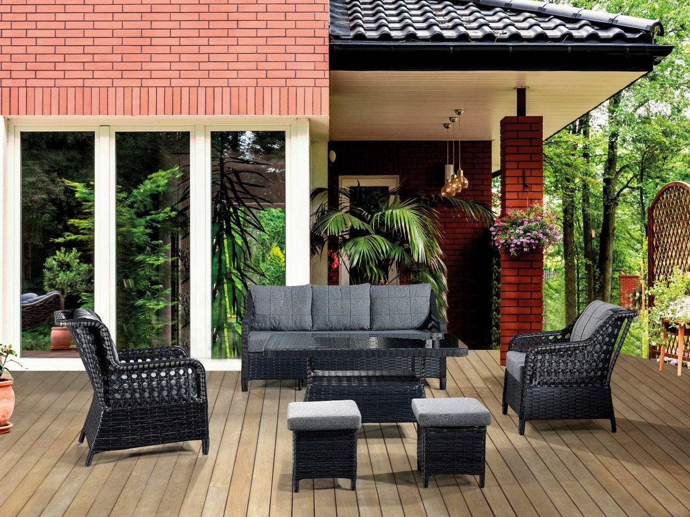 Uživajte v čudovitih trenutkih na prostem s Vrtno garnituro Ramonda. Ta garnitura je idealna za sproščanje in druženje na vrtu, terasi ali verandi. Izdelana je iz visoko kakovostnega ratana s trdnim aluminijastim okvirjem, ki zagotavlja odpornost na vremenske vplive in dolgo življenjsko dobo. Prednost tega izdelka je njegova vsestranskost, ki vam omogoča, da ga enostavno prilagodite svojemu zunanjemu prostoru.