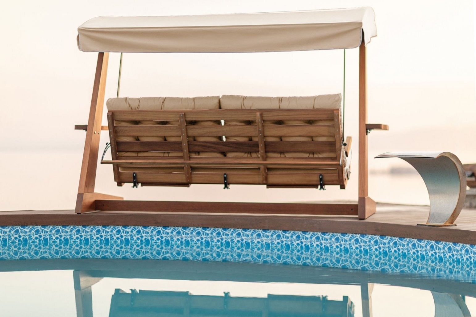 Naša vrtna gugalnica Arcadia je idealna izbira za vašo teraso ali vrt. Izdelana je iz 100% lesa Iroko, ki zagotavlja stabilnost in dolgotrajnost, medtem ko je 100% Etisilk tkanina preprosta za čiščenje in odporna na vodo. To pomeni, da lahko brezskrbno uživate v svoji gugalnici, ne glede na vremenske razmere. Poleg tega je Arcadia odporna na UV svetlobo in ne zbledi s časom, kar ji omogoča, da ohranja svojo prvotno barvo in eleganco.