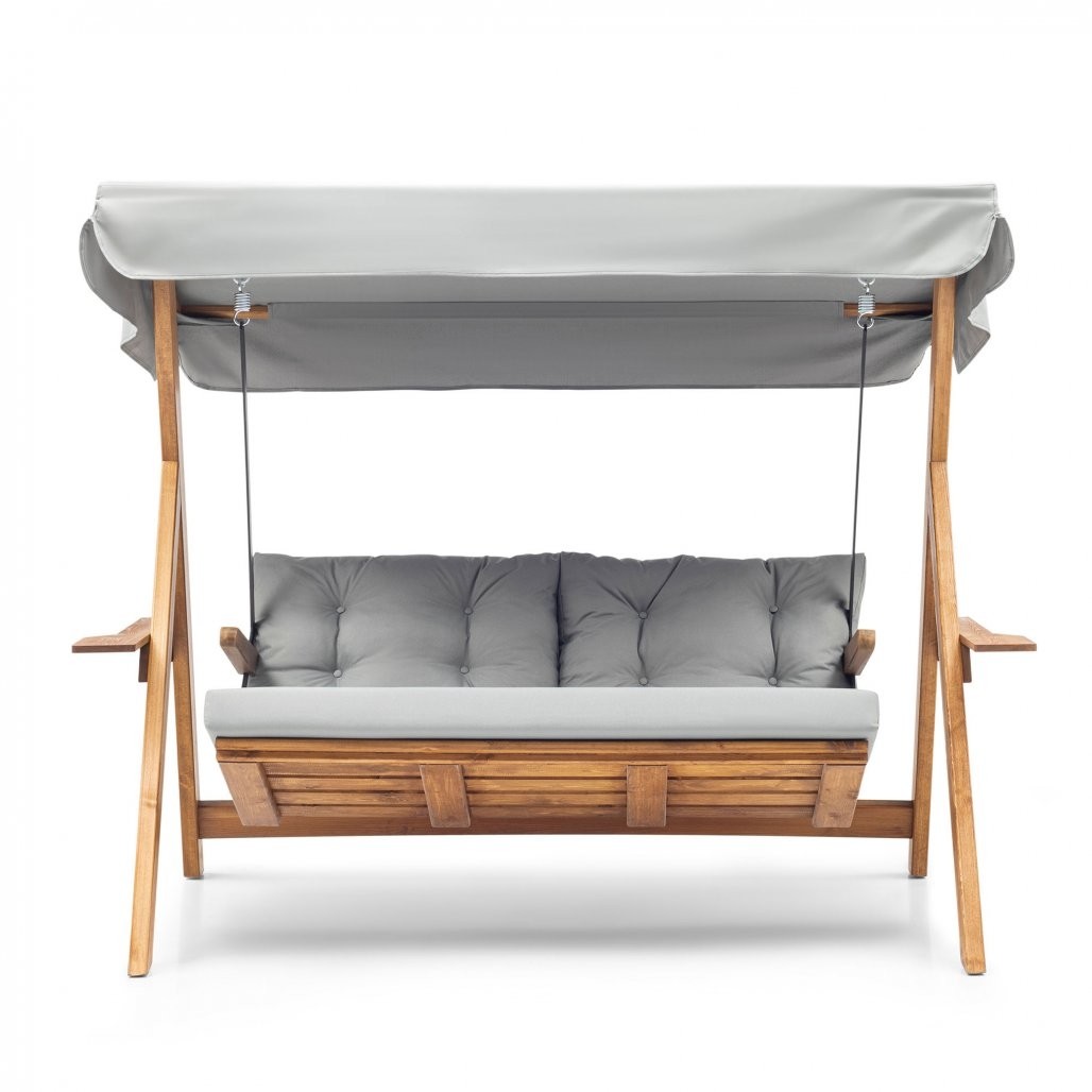 Ni več potrebno trpeti na neudobni vrtni klopici, ko lahko uživate v razkošju in udobju Vrtne gugalnice Helios III. Elegantna, a robustna gugalnica je izdelana iz trpežnega borovega lesa in ponuja prijetno mesto za počitek na vrtu ali terasi. Vroče poletne popoldneve in noči lahko pričakate v prijetni senci, ki jo zagotavlja UV odporno platno. Izdelana je iz tkanine, ki je vodoodporna, kar pomeni, da lahko brez skrbi pustite gugalnico zunaj ob vsakem vremenu.