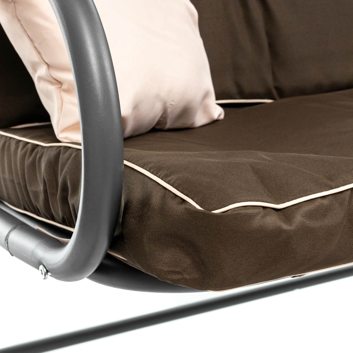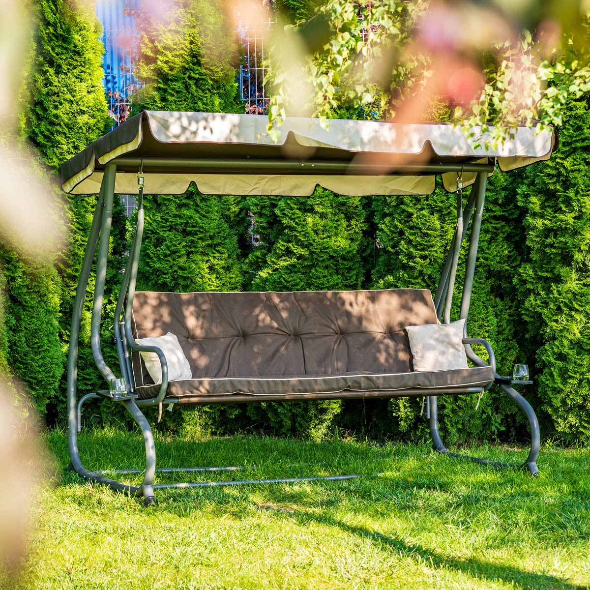 Svoj vrt opremite z moderno in kvalitetno vrtno gugalnico Megi na kateri se boste z veseljem sprostili v brezskrbnih poletnih dneh. Rjava barva se bo prijetno podala k vašemu domu. Narejena je iz kvalitetnega kovinskega ogrodja in tkanine iz poliestra, ki skupaj poskrbita za prijeten in varen počitek. Maksimalna obremenitev gugalnice znaša 300 kg.
