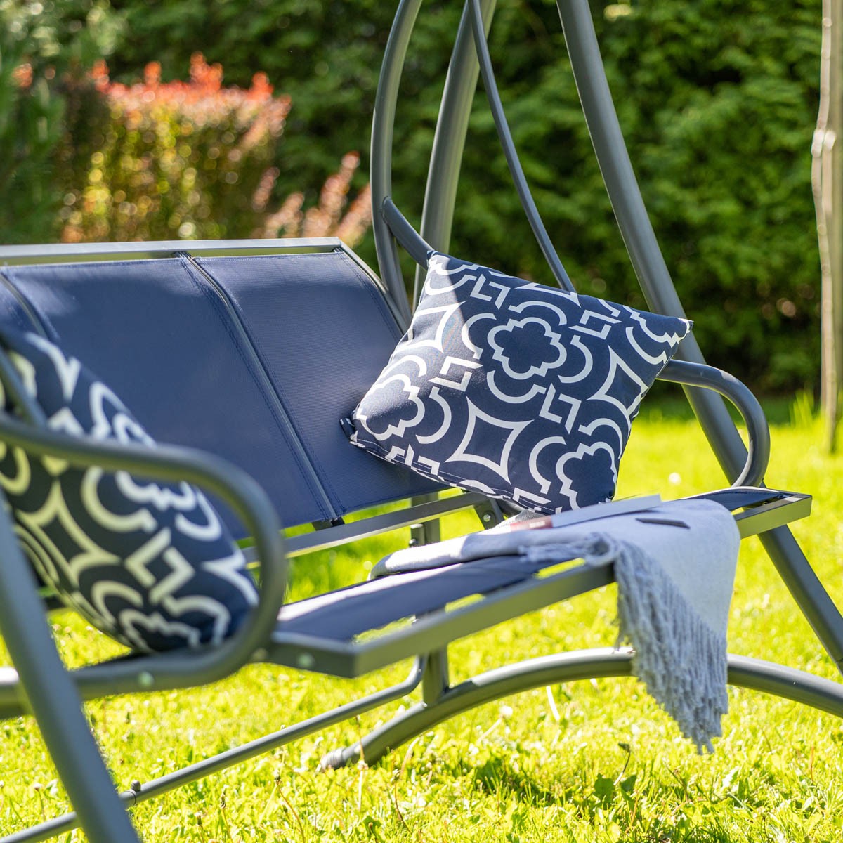 Vrtna gugalnica VIKTORIA 2 je modernega izgleda in primerna za sprostitev v poletnih dneh. Gugalnica je narejena iz kovinskega ogrodja, ki daje varen občutek med vašim počitkom. Maksimalna obremenitev znaša 350 kg.