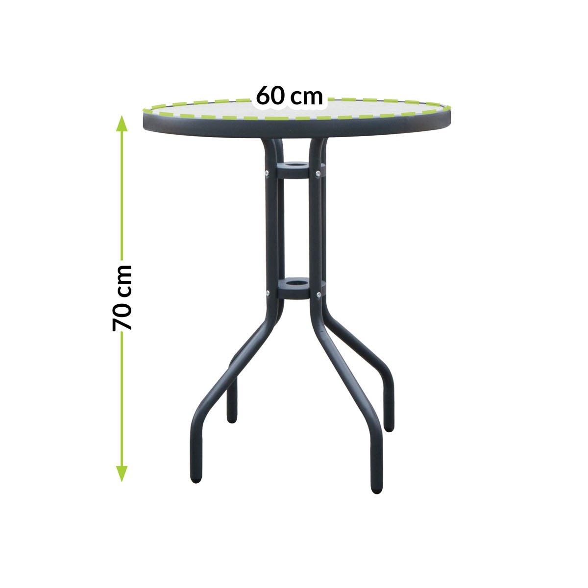 Klasična in preprosta mizica SATURN bo na vašem vrtu ustvarila videz rustikalnosti. Na njo boste lahko odložili pijačo, prigrizke ali knjige, ki jih boste brali med počitkom v vročih poletnih dneh. Miza ima kovinsko ogrodje, ki skrbi za stabilnost. Ploskev mize je narejena iz stekla.