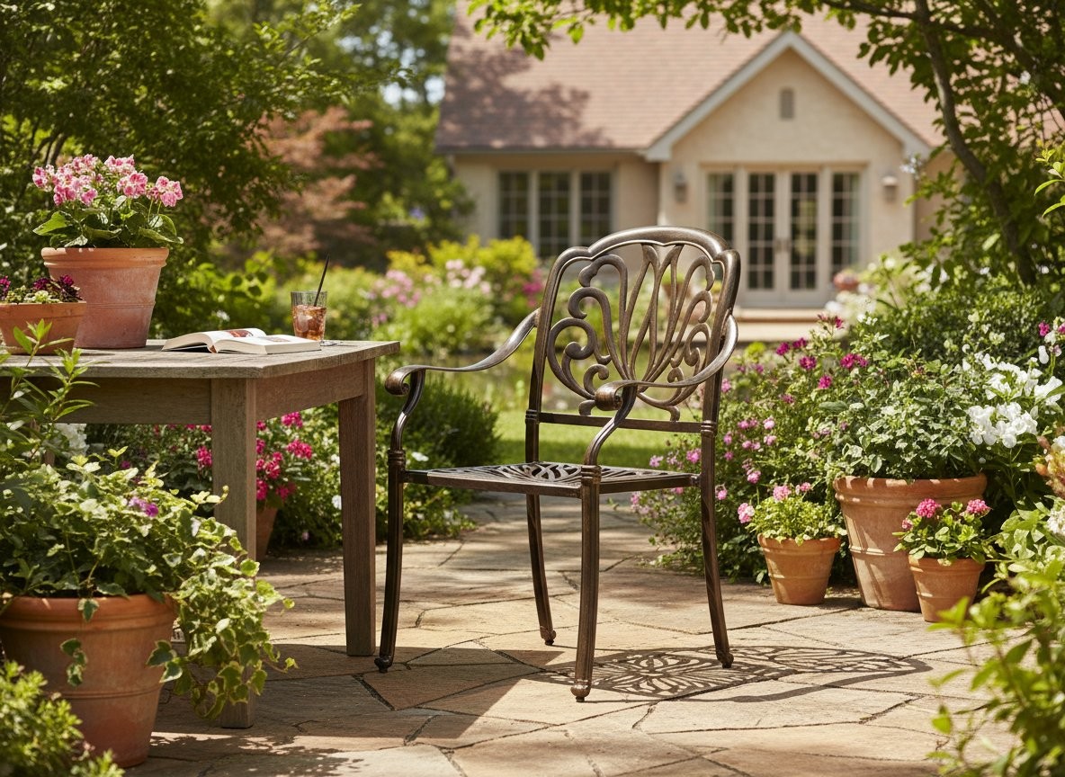 Vrtni fotelj Hasting (antično rjav) prinaša premišljeno rešitev za udobno sedenje na vrtu, terasi ali balkonu. Izvedba v odtenkih rjava, antično rjava (rdečkasti bakren odtenek) omogoča enostavno usklajevanje z različnimi zunanjimi ambienti. Materiali, kot so aluminij, polni odlitki iz aluminij, prispevajo k urejenemu videzu in praktični uporabi.
