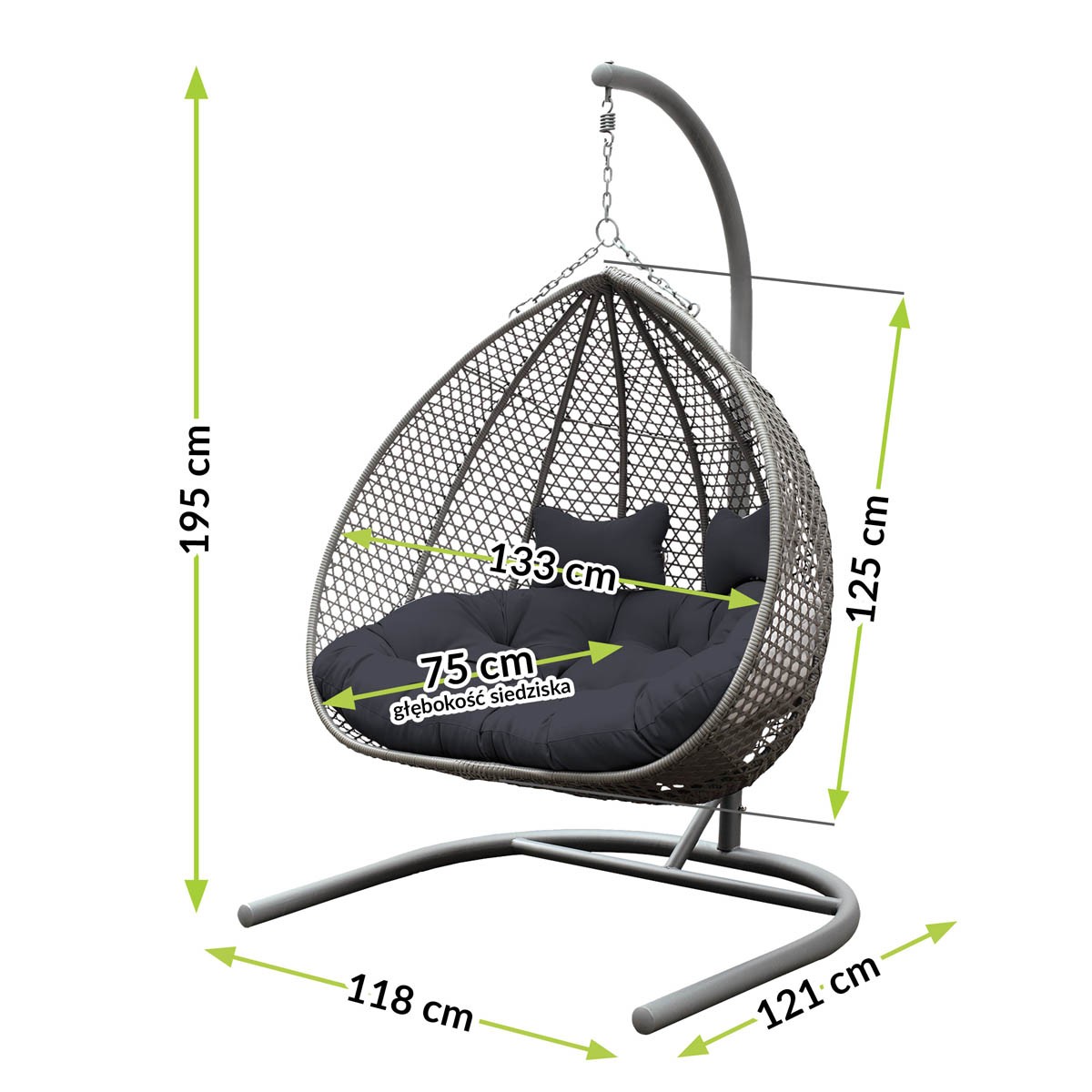 Privoščite si udobje, ki ste si ga vedno želeli. Vrtni gugalnik GRENADA je izjemno udoben in prijeten gugalnik, ki vas bo v toplih večerih ponesel v oazo miru in počitka. Primeren je za dve osebi. Kovinsko ogrodje skrbi za varnost in stabilnost gugalnika, blazine pa za popolno udobje. Primeren je za vrt ali teraso, njegova maksimalna obremenitev pa znaša 200 kg.