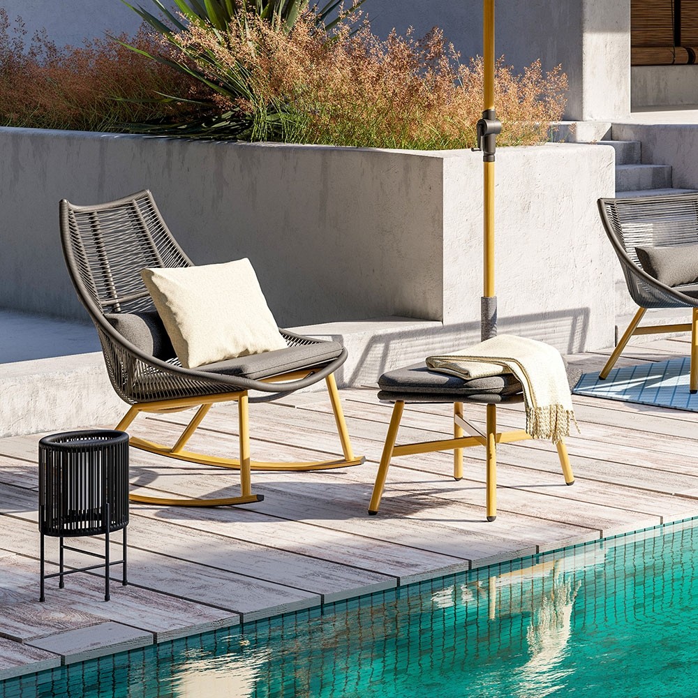 Vrtni stol HELSINKI je idealen stol za prijeten popoldanski počitek. Stol vas bo nežno zazibal in pomiril ob sproščanju na vašem vrtu ali balkonu. Kot dodatek pa dobite tudi podstavek za noge, da bo vaš počitek zares izjemen. Na voljo v črni barvi. Ogrodje narejeno iz aluminija.