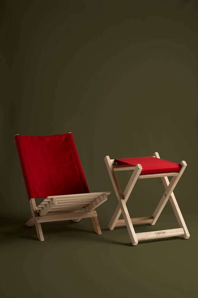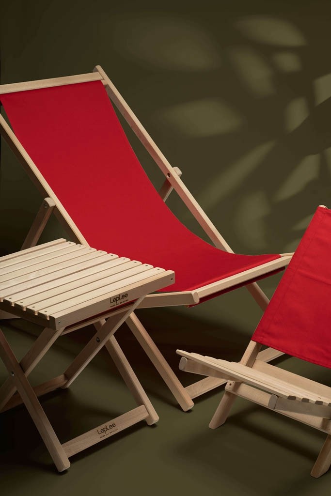 Narejen je iz kakovostnega bukovega lesa, ki je tako kvaliteten, da tudi pri zunanji uporabi in ob izpostavljenosti vsem vremenskim razmeram ne potrebuje zaščite. Dostopen je v veliko različnih barvah. Zaradi visokokvalitetnega bukovega lesa in posebnih širokih profilov je komplet zelo zdržljiv, in bo dolgo časa ostal lepo ohranjen. Za lažje vzdrževanje je platno snemljivo in pralno. Za skladiščenje priporočamo suh in temen prostor. Ob stalni uporabi les rahlo potemni zaradi umazanije v dežju in zraku. Maksimalna nosilnost je 100 kg.