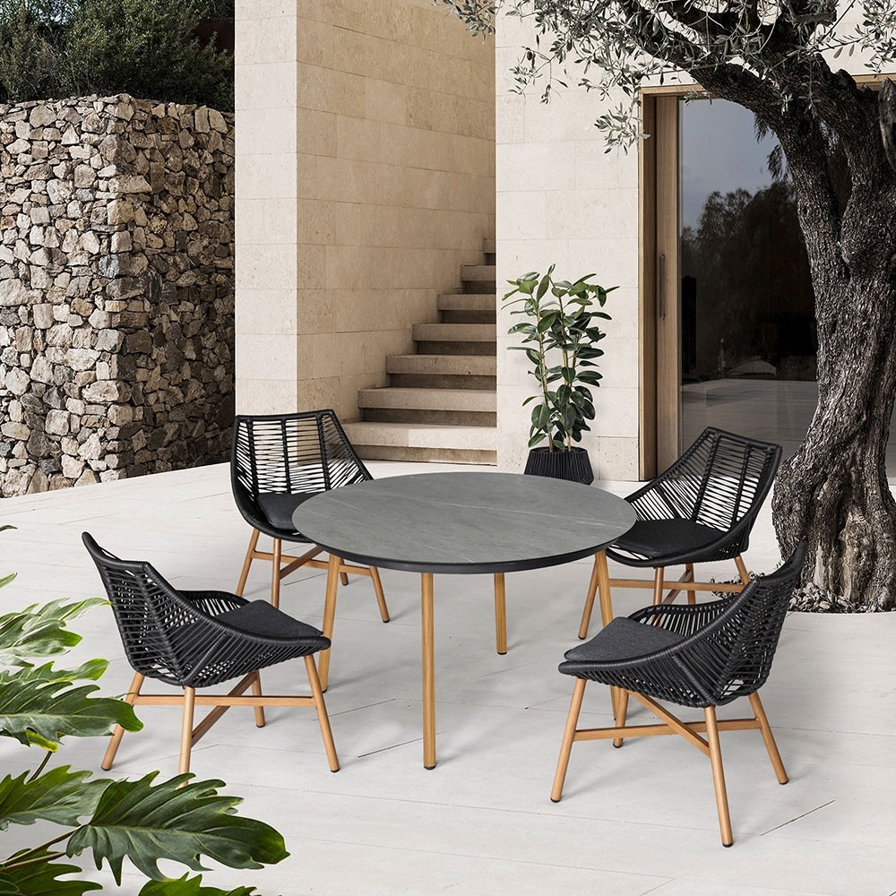 Eleganten in preprost jedilni set HELSINKI je primeren za balkon ali vrt na katerem boste lahko gostili prijatelje ali družino. Ogrodje je iz aluminija, blazine pa poskrbijo za udobje stola. Ploskev mize je steklena. Na voljo je v sivi barvi.