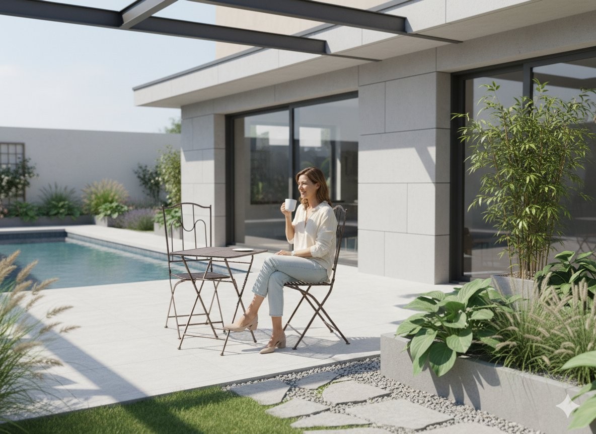 Dobro se obnese v prostorih, kot so balkon, terasa, vrt. Med navedenimi merami izstopajo 60 × 60 × 70 cm in 50 × 40 × 95 cm. Komplet oziroma zasnova vključuje 2 stola, miza.
