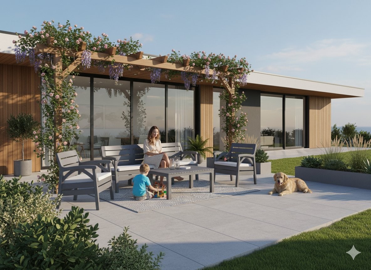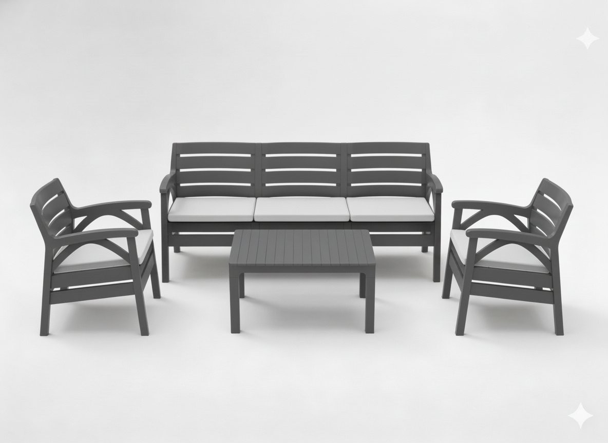 Vrtni set Santana (antracit/bež) prinaša premišljeno rešitev za urejeno in udobno zunanjo jedilno ali sprostitveno površino. Izvedba v odtenkih antracit, blazine: bež omogoča enostavno usklajevanje z različnimi zunanjimi ambienti.