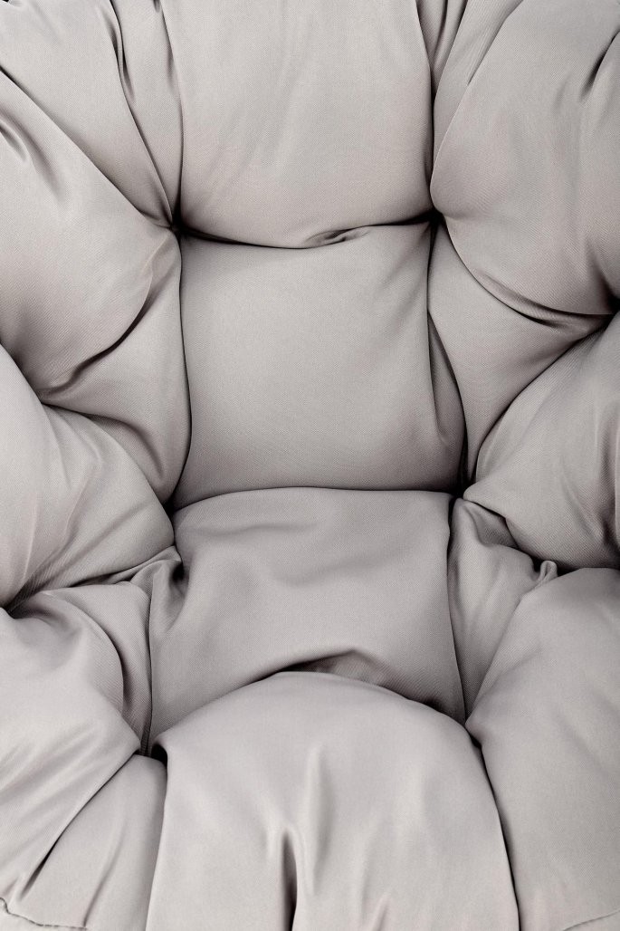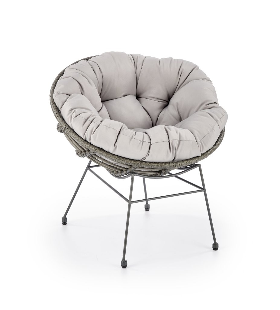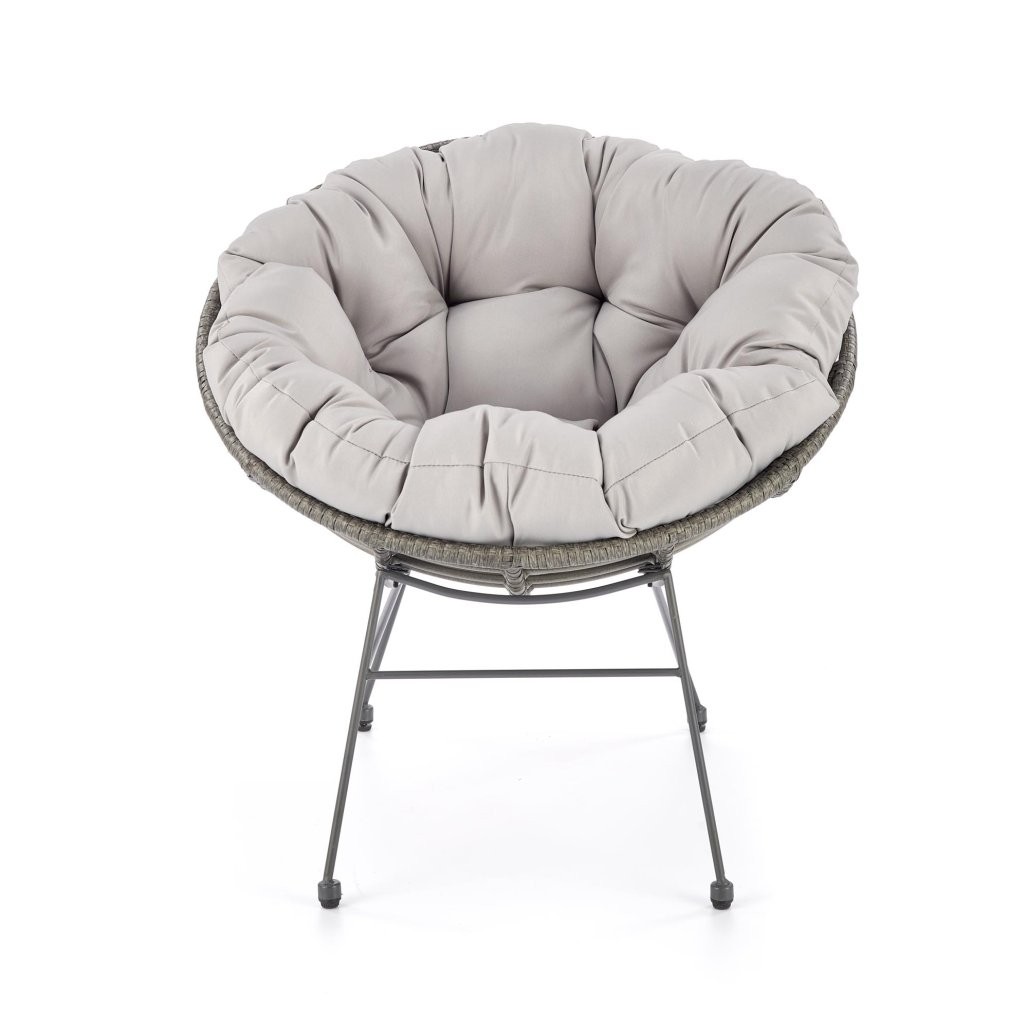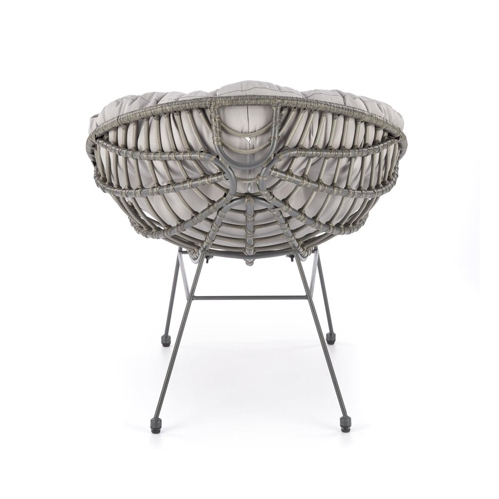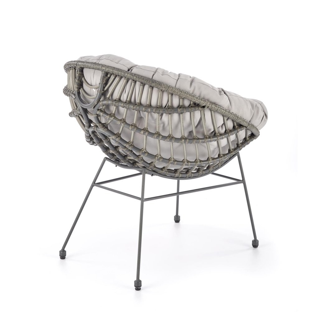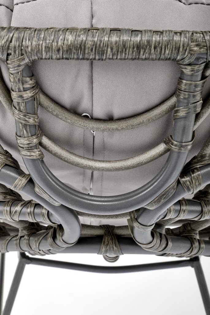 Vrtni stol Lirael je narejen iz umetnega ratana in tkanine, kar omogoča udobno sedenje na prostem, s sodobnim skandinavskim dizajnom in sivimi odtenki.