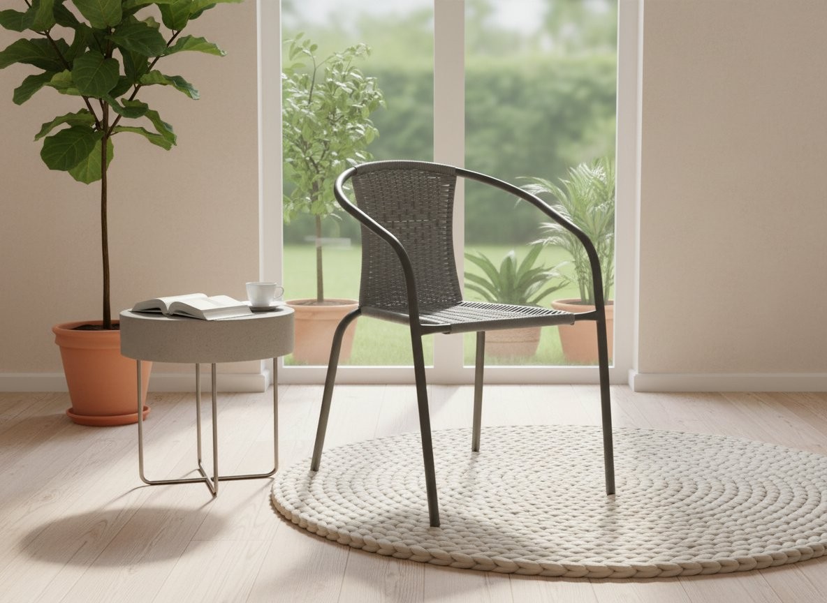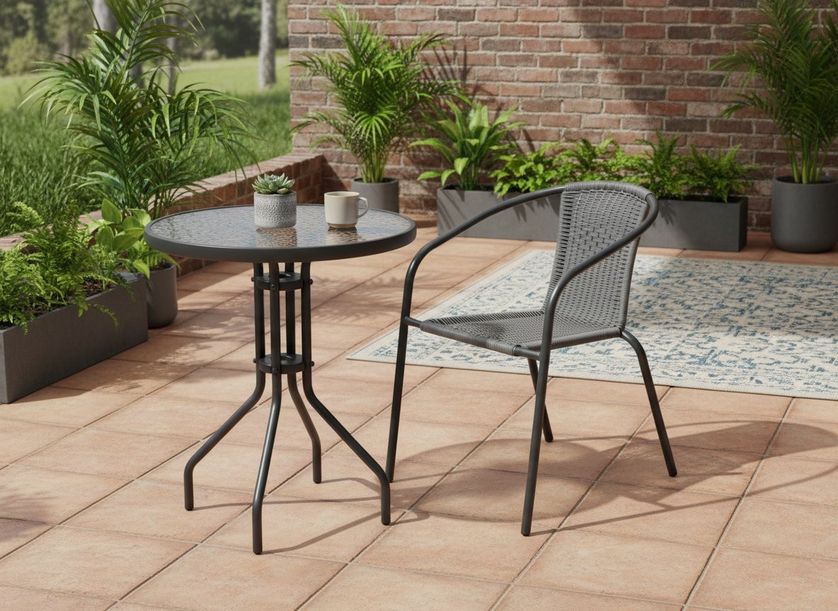 Kombinacija plastike in jekla ustvarja stabilno konstrukcijo za vsakodnevno uporabo. Stol ima udobno sedišče in ergonomsko naslonjalo, zato je primeren za sproščeno sedenje na prostem.