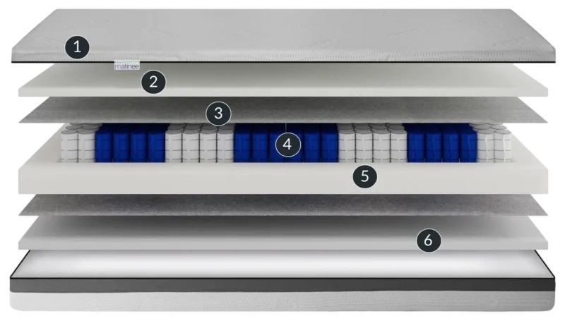 Žepkasta vzmetnica CAILAN je izdelana iz najkvalitetnejših materialov, ki omogočajo ohranjanje njene oblike in preprečujejo deformacijo vzmetnice po dolgotrajni uporabi in tako omogoča udoben spanec. Sestoji iz 6 plasti izmed katerih ima vsako pomembno funkcijo za ohranjanje elastičnosti in oblike vzmetnice. S svojo strukturo poskrbi za pravilno postavitev hrbtenice.