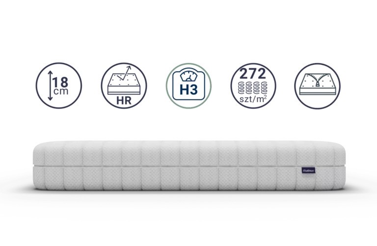 - Visokoelastična HR pena debeline 3cm: ker je narejena iz milijone zračnih mehurčkov, je zasnovana za vzmetnice z izjemno prožnostjo. Visoka elastičnost tako omogoča prilagajanje obliki telesa. Kljub temu pa je pena zelo trpežna in odporna na deformacije, tako da vzmetnica tudi po večletni uporabi ohrani svoje lastnosti.