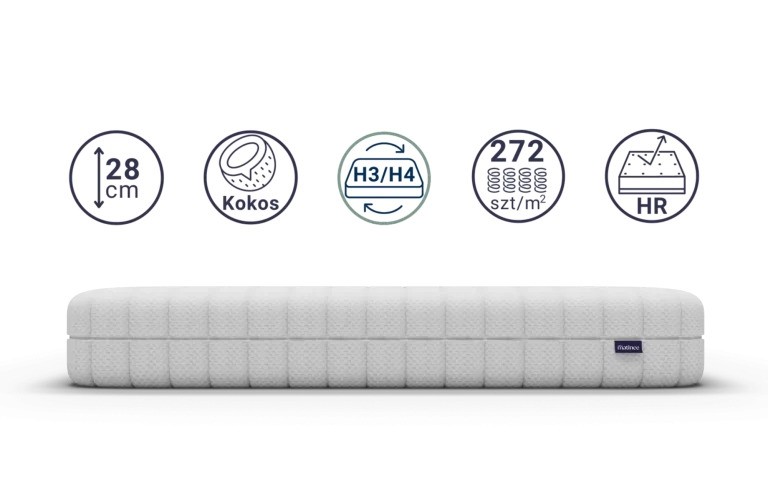 - Visokoelastična HR pena debeline 4cm: je izjemno trpežna zaradi strukture iz milijone zračnih mehurčkov. Te peni dajo visoko elastičnost, ki omogoča prilagajanje oblike vašemu telesu. Hkrati pa je pena tudi odporna proti deformaciji in ohranja svojo obliko tudi po mnogih letih porabe.